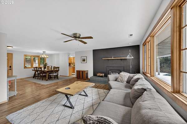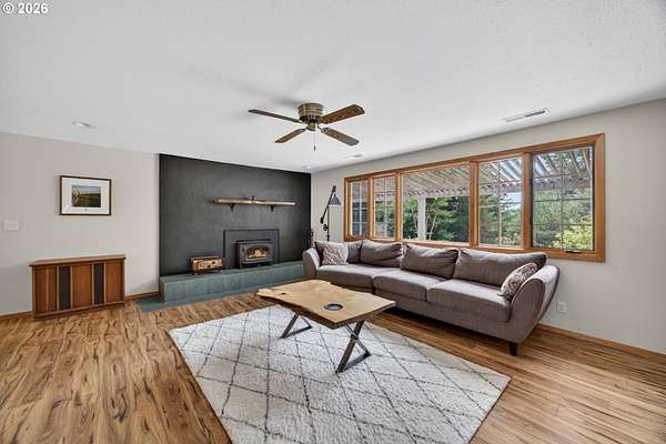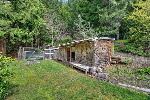 Private Country Living in a Perfect location. Discover the perfect blend of privacy, space, and convenience in this stunning custom-built home set on 7.4 serene acres. With 2,020 sq ft of thoughtfully designed living space, this 3-bedroom, 2-bath property offers the peaceful lifestyle you've been dreaming of-just about 20 minutes from Bandon's world-class golf courses, beaches, and dining. Step inside to find a warm and inviting layout featuring a spacious living room and two separate family rooms-one seamlessly opening to the kitchen, making it ideal for entertaining and everyday living. Featuring stunning wood windows throughout. The home is filled with natural light. The kitchen boasts like-new Energy qualified stainless-steel appliances and flows easily into a dedicated dining area. Cozy up year-round with two wood stove inserts, adding charm and comfort throughout the home. Enjoy outdoor living at its finest with a welcoming front patio, covered porch, and a beautiful back deck complete with a pergola-perfect for relaxing or hosting gatherings while surrounded by nature. The property also includes a detached 2-car garage, multiple outbuildings, and ample space for hobbies, storage, or animals. If you're looking for privacy, natural beauty, and proximity to coastal amenities, ideally situated this exceptional property checks all the boxes. Schedule your showing to the charming costal communty of Coos Bay and Coquille. today and experience it for yourself