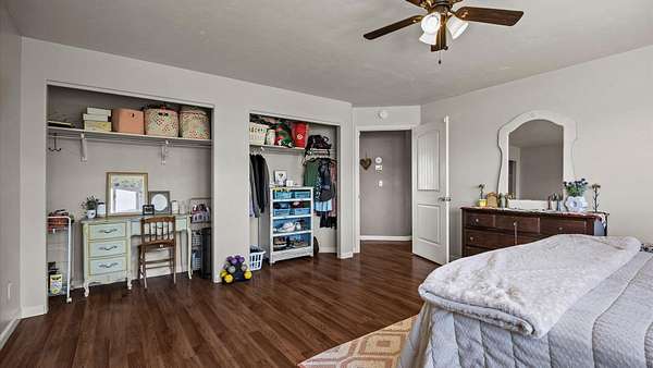 - Ceiling Fans, Jetted Tub, Kitchen Dining Combo, Pantry, Upper Level Primary, Walk In Closets, Window Treatments