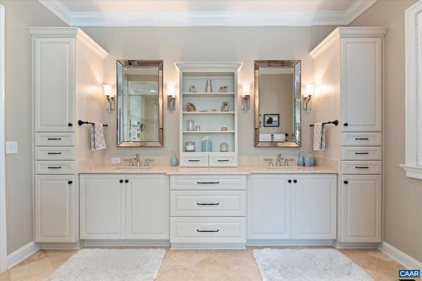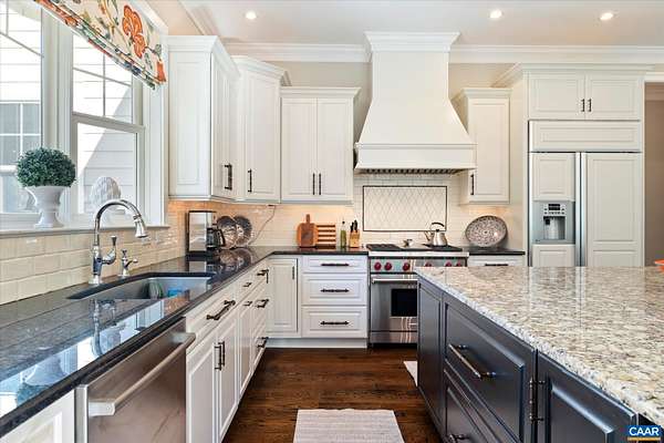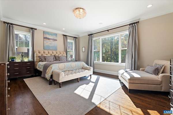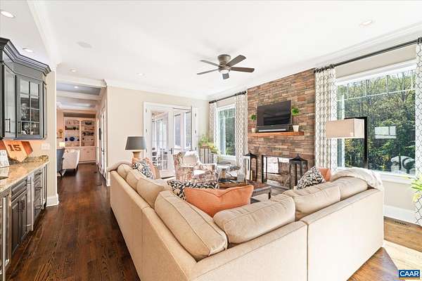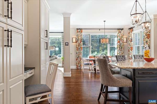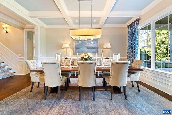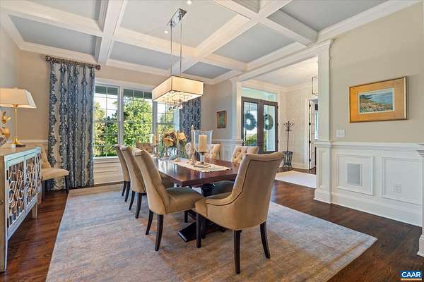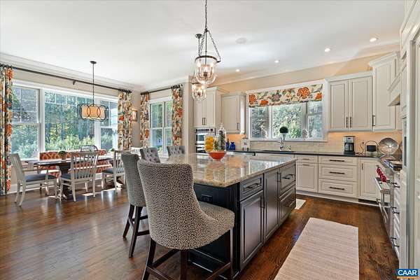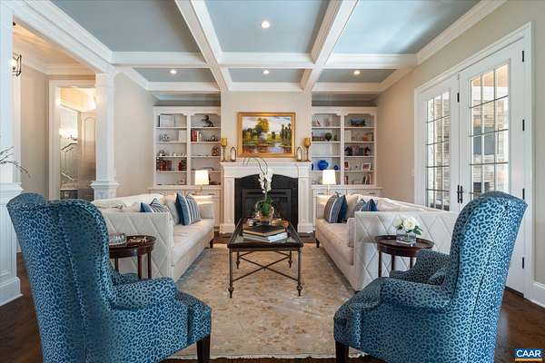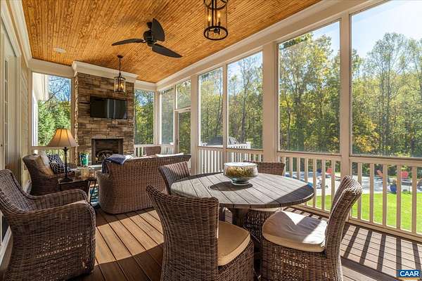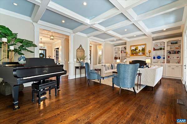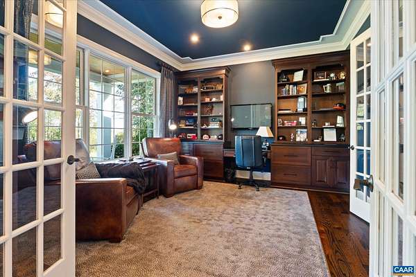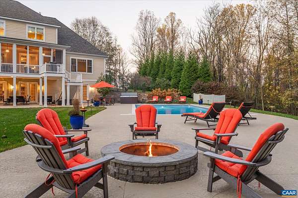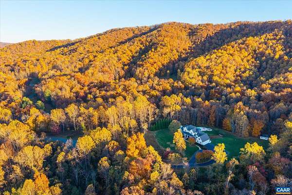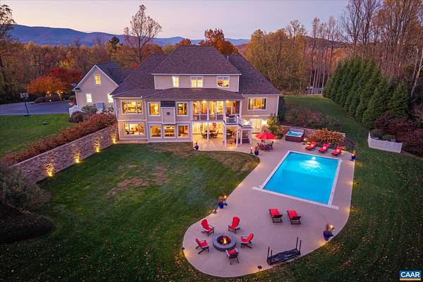Custom built in 2014 and set on more than four landscaped acres in Western Albemarle, this inviting residence offers remarkable craftsmanship, privacy, and scale. The home balances openness with warmth, featuring 7 bedrooms, 6 full baths, and 2 half baths, including a main level primary suite. Architectural details—French doors, coffered ceilings, multiple fireplaces, and refined millwork—add timeless character throughout. A beautifully appointed open kitchen anchors the home and flows seamlessly into living and gathering spaces. Designed for modern living, the property also includes home offices, a gym, and numerous areas for recreation and entertaining. Outdoors, the grounds evoke a private retreat, with a swimming pool, screened porch, and sweeping lawns ideal for hosting family and friends. A rare offering in the serene Western Albemarle countryside.