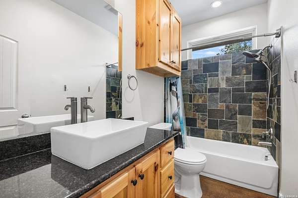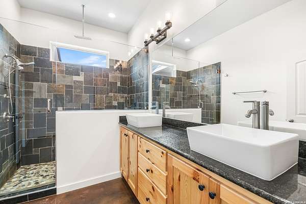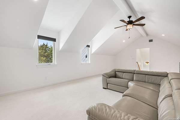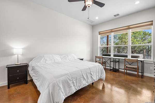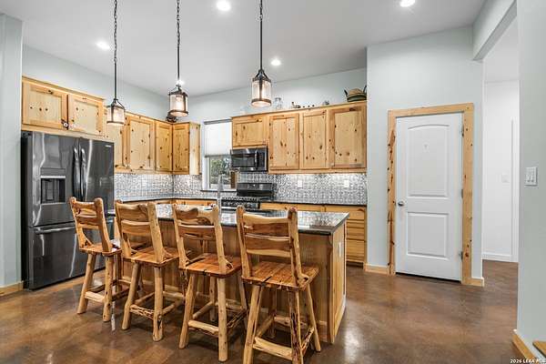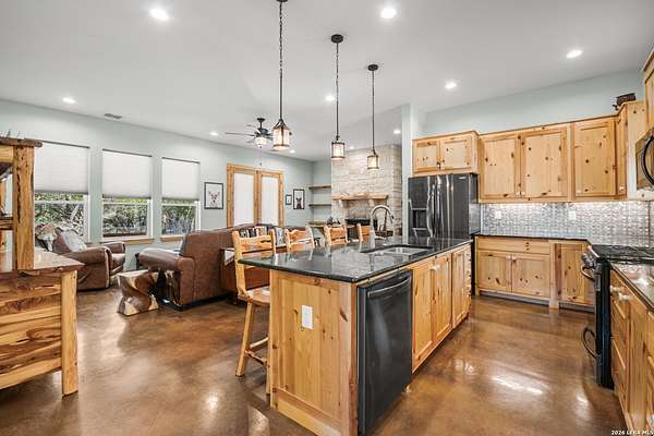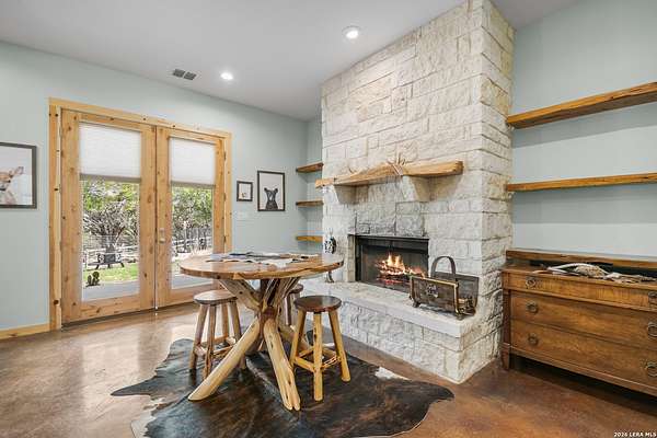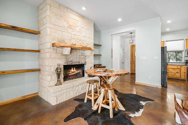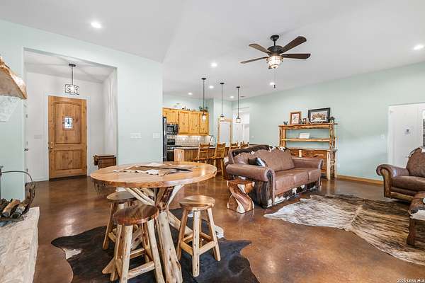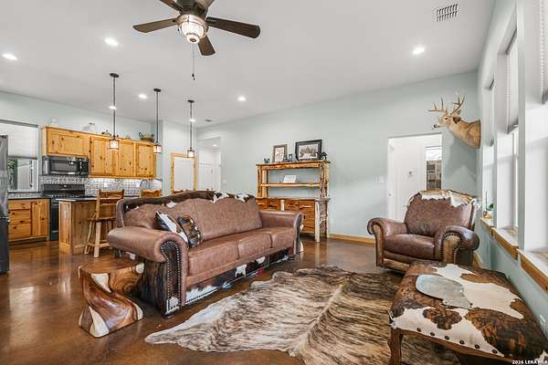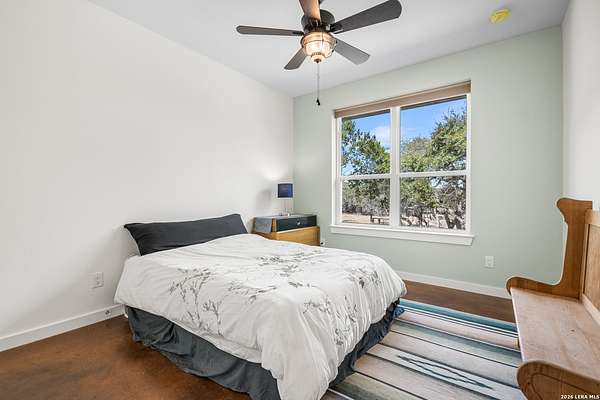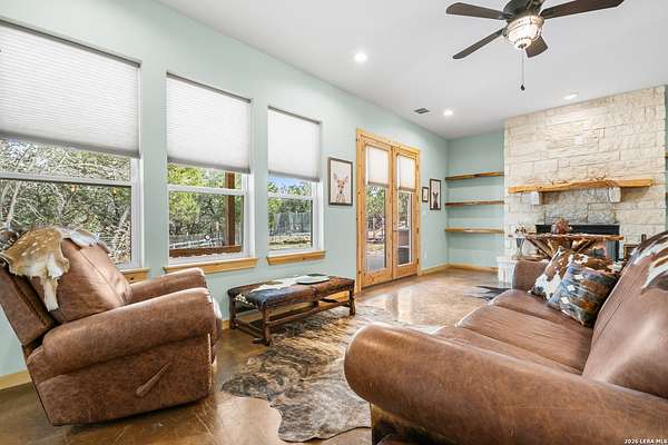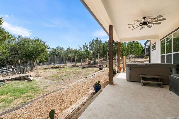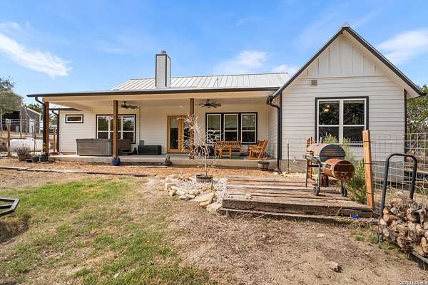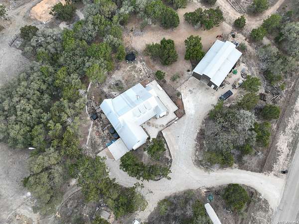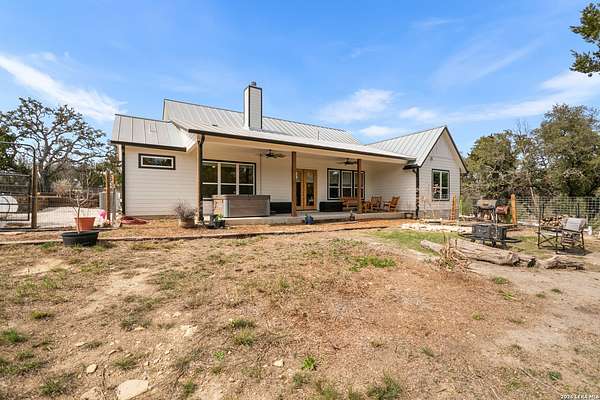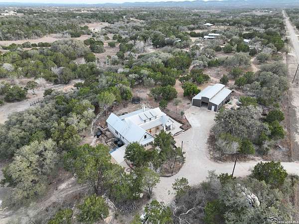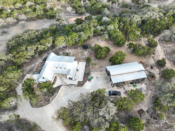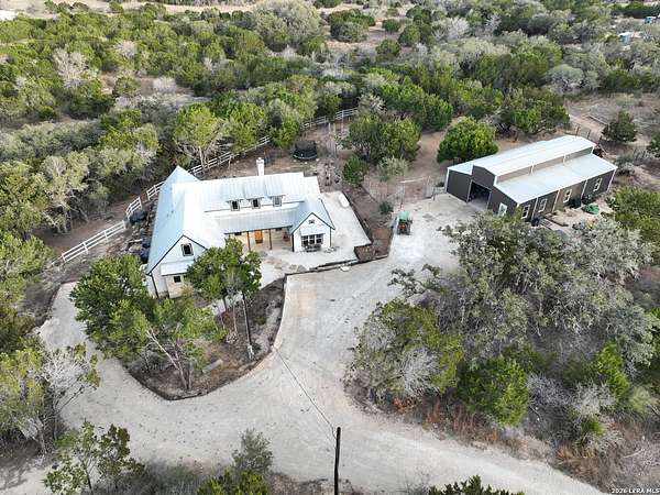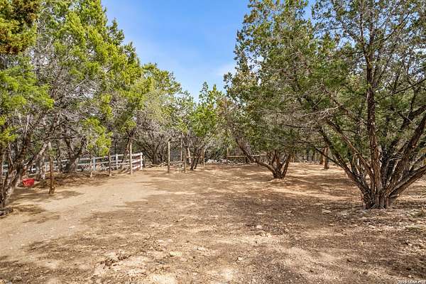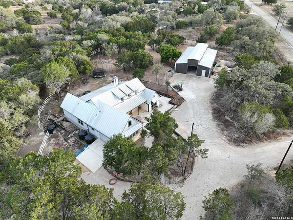Set on 13.46 unrestricted acres with no HOA, this thoughtfully built homestead property offers the freedom to live the Hill Country lifestyle your way. Built by Barton Custom Homes, the 2,577 square foot home features 3 bedrooms, 2.5 baths, a dedicated office, and an upstairs bonus room ideal for a playroom, craft space, or hobby retreat. The land is equally impressive. Approximately 1,600 linear feet of fencing encloses half the property, making it ready for livestock. A chicken coop, 36x60 barn with partial concrete, RV hookup, 4,000-gallon cistern, and three 1,000-gallon poly rain collection tanks support a working homestead or hobby farm that can evolve over time. The barn's versatility allows for equipment storage, animals, workshop space, or future expansion. A few of the home features are: custom knotty alder cabinetry, shelving around the fireplace and mantle are custom cyprus, 2x6 walls and trusses, enhanced with foam insulation, a three-zone AirTran HVAC system (one unit upstairs, two downstairs), propane heat and stove, on-demand water heater, and a 500-gallon propane tank. Surrounded by mature trees, rolling hills, and a seasonal creekbed, the property invites hiking, fossil hunting, and enjoying the natural shade throughout the year. Herds of axis and whitetail deer can be spotted frequently. The expansive back porch, complete with a hot tub, is the perfect place to enjoy quiet mornings and relaxed evenings. Located on a peaceful street where your neighbors ride horses to pass time, yet just 5 miles to town, this property offers both privacy and accessibility. Conveniently positioned 30 miles to Boerne, 24 miles to Kerrville, and 55 miles to the San Antonio airport, all in Bandera, the Cowboy Capital of the World. With infrastructure in place for animals and agriculture, yet endless flexibility for other pursuits, this property truly becomes whatever you envision.