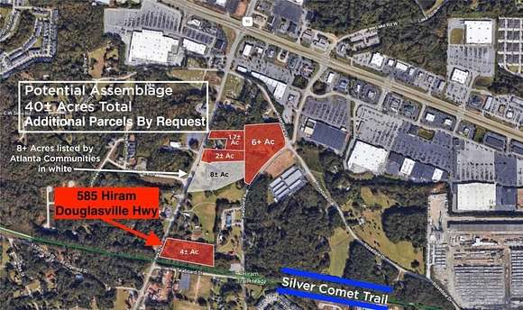PRIME LOCATION FOR DEVELOPERS! Incredible 4 acre parcel surrounded by additional lots listed by BHHS for a potential 40+/- acre assemblage. Potential Commercial with maximum exposure along Hwy 92. Adjacent to the Silver Comet Trail and minutes to Retail, Shopping, Dining, Film Studio & Wellstar's Paulding Hospital. Hwy 92, Seaboard and Rosedale frontage if assembled. Prep work in process for the widening of HWY 92--COMING SOON! DOT plans available. Search BHHS's listings 244 Rosedale, 263 Hiram Douglasville Hwy and 329 Hiram Douglasville Hwy. Utilities Connected. NO TRESPASSING! DO NOT WALK PROPERTY.