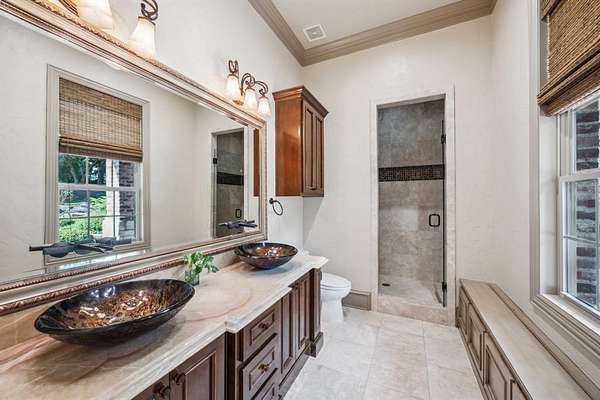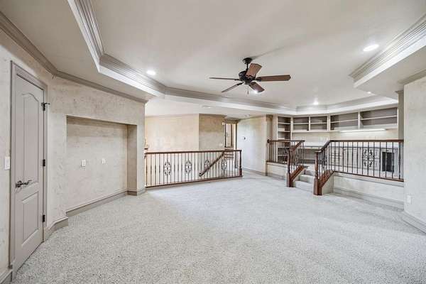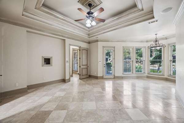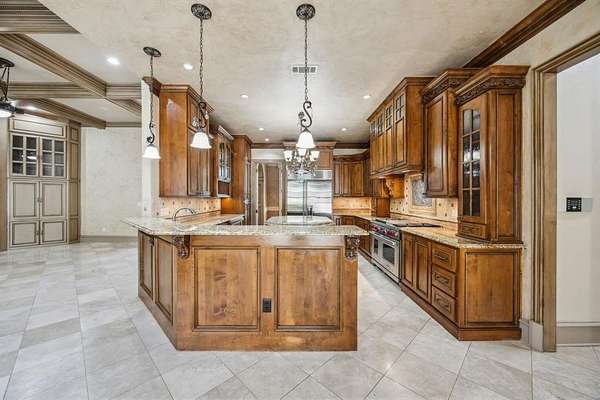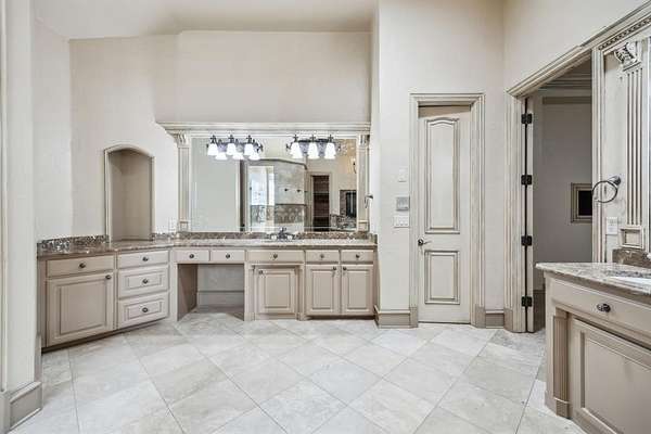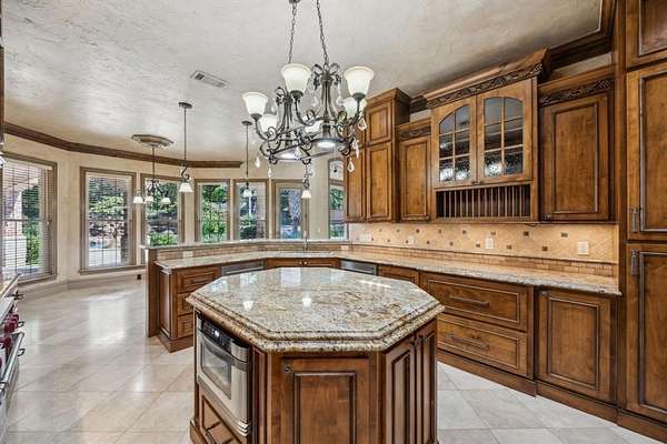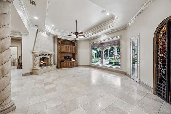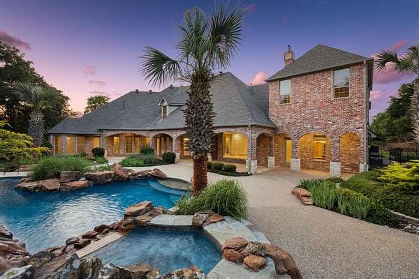 Discover unparalleled luxury at this magnificent 7,521 sq ft plus 2,053 sq ft guest quarters estate, on over 1.5 pristine acres on the prestigious N Peytonville. This architectural masterpiece features 6 bedrooms and 7 full bathrooms on the property, seamlessly blending elegance with entertainment. Exceptional guest quarters feature stone floors, rich wood ceilings, brick accents, Viking outdoor grill, stone gas fireplace, full kitchen, ensuite bedroom, and spacious upstairs loft. The gourmet kitchen in the main house showcases a premium 48 inch built-in Sub Zero refrigerator, Wolf gas range with double ovens, and stunning granite island with custom woodwork. Formal living boasts a marble fireplace, while the family room centers around a dramatic stone floor to ceiling fireplace and views of the outdoor oasis. The wine enthusiast's paradise includes a wrought iron door leading to a sophisticated bar with sonic ice, wine refrigerator, and custom bottle shelving. Entertainment abounds with two game rooms--one featuring a floor-to-ceiling stone fireplace and oversized bar with onyx countertops--plus a tiered media room with projection system. The thoughtful dog room includes a washing station and gated turfed area. The primary sanctuary offers travertine floors, private backyard access, and a spa-like ensuite with jetted tub, walk-in shower, two vanities, and two cedar walk-in closets. The resort-style backyard showcases custom landscaping with palm trees galore, sparkling pool and spa with waterfall, and covered outdoor living. Complete with 4-car garage--this is luxury living redefined. Carroll ISD!