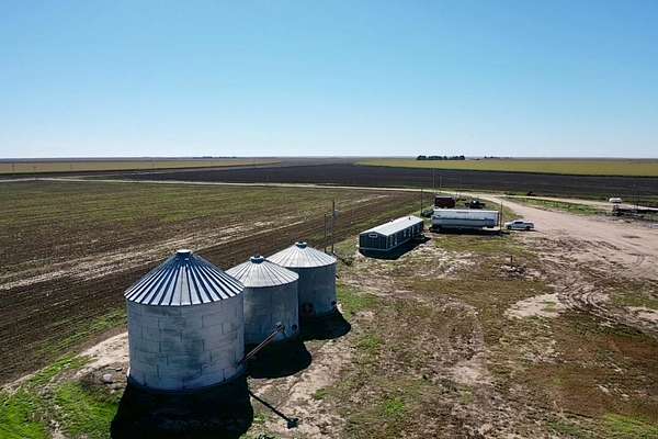 Three grain bins east of the shop provide 20,000 bushels of grain storage.