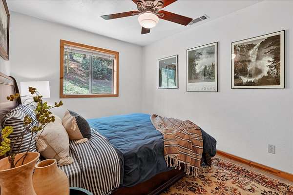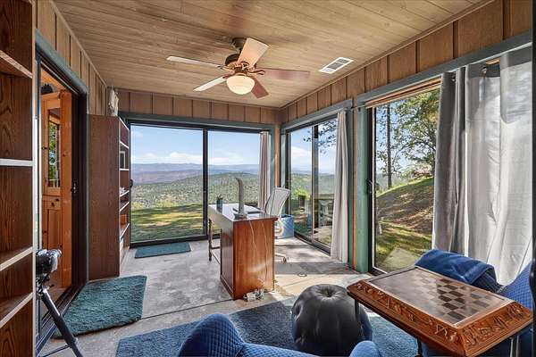 Welcome to an extraordinary 40-acre mountain retreat where breathtaking Sierra Nevada panoramas unfold before your eyes every single day. Nestled at the end of Mount Bullion Ridge Road, this stunning 3-bedroom, 2-bathroom home offers 1,750 square feet of thoughtfully crafted living space just 45 minutes from world-renowned Yosemite National Park. The artistry of this property begins in the gallery kitchen, where a Viking built-in oven range takes center stage alongside custom cabinetry milled from Ponderosa Pines harvested directly from the land. The dining room table and fireplace mantle were hand-crafted from a Black Oak tree that once graced the property, creating a truly irreplaceable connection between home and landscape. Gaze through your front windows to spot El Capitan, Glacier Point, and the majestic peaks above Hetch Hetchy Reservoir, simply amazing! Beyond the main residence, a 1,900-square-foot cabin currently serves as a workshop, office, and hobby space complete with a fully equipped woodworking shop featuring a Delta table saw, thickness planer, and quality tools all included in the sale. This versatile structure holds tremendous potential for conversion into additional living quarters. Also, discover a wine cellar built directly into the mountainside with capacity for over 500 bottles, perfect for the connoisseur. Practical features abound, including a 220-foot deep well currently producing 20 gallons per minute, a 2,500-gallon water storage tank, and a 3,000-gallon fire protection tank with CalFIRE hose fitting. A two-car garage plus an additional small garage house perfect for storing a tractor, or ATV's, and/or other tools, for exceptional mountain living. Whether envisioned as a weekend getaway, short-term rental opportunity, or your permanent escape into peace and tranquility, this one-of-a-kind Mariposa property delivers an unmatched lifestyle.