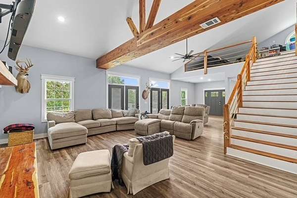 Located just 20 minutes North East of Madisonville, this rural property is waiting for its new owners. This 4 bedroom 3 bath property feature over 3700 square feet of living space on just over 22 acres. Entertain guests in the great room area with high ceilings, lots of natural lighting and plenty of space for any size family. Main bedroom has easy access on the main floor with spacious bathroom and huge walk in closet. 2 bedrooms and 1 bath upstairs with sitting area overlooking the great room. Large eat in kitchen with bar seating and large living area. Spacious covered deck with an awesome view overlooking the small lake on the property. Take a stroll through the wooded acreage and fish in the stocked lake with the family. Country living at its finest!!