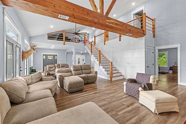 Located just 20 minutes from Madisonville this rural property is waiting for it's new owners. This 4 bedroom 3 bath property features over 3700 square feet of living space on just over 22 acres. Entertain guests in the great room area with high ceilings, lots of natural lighting and plenty of space for any size family. Main bedroom has easy access on the main floor with a spacious bathroom and huge walk in closet. 2 bedrooms and 1 bath upstairs with sitting area overlooking the great room. Large eat in kitchen with bar seating and large living area. Spacious covered deck with a awesome view overlooking the small lake on property. Take a stroll through the wooded acreage and fish in the stocked lake with the family. Country living at it's finest!!!