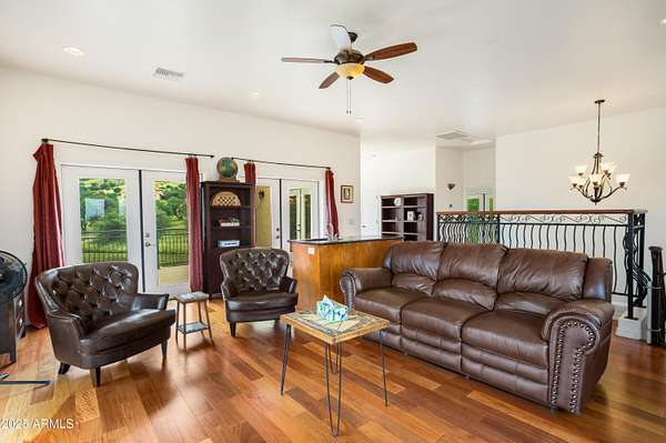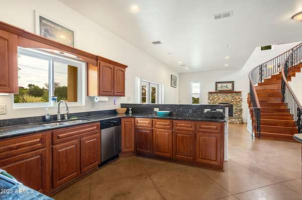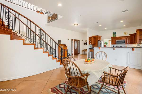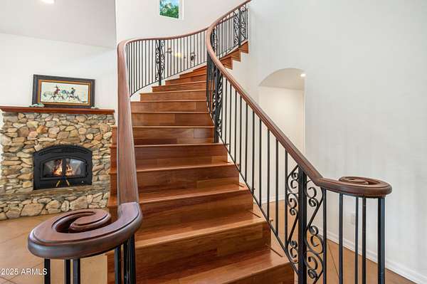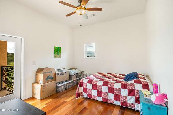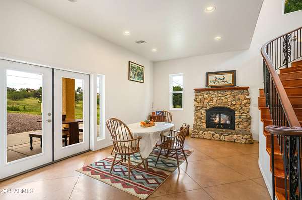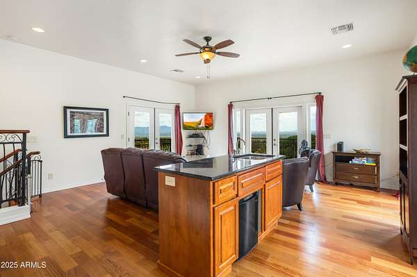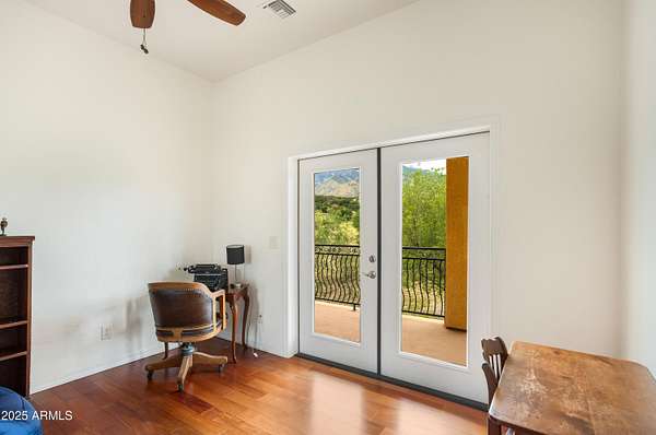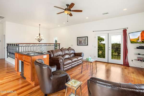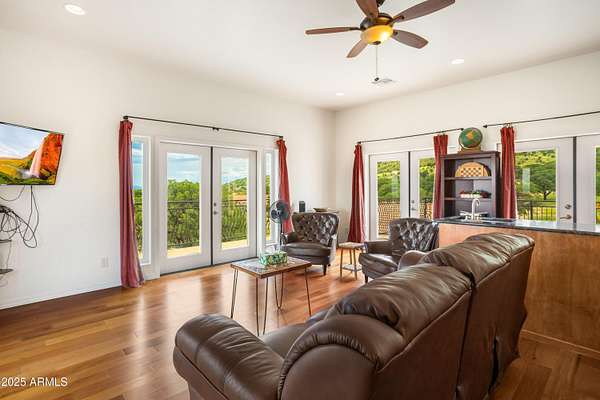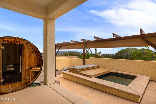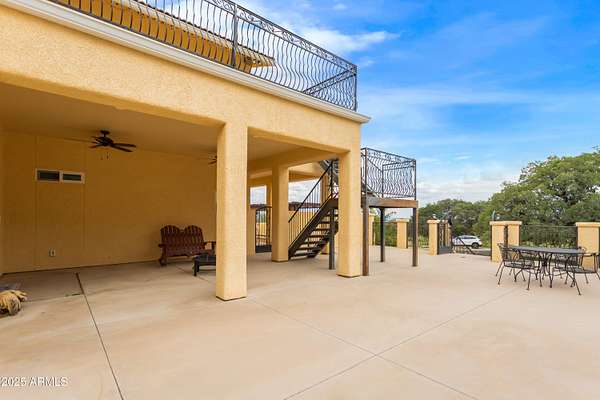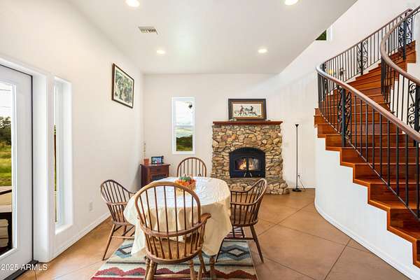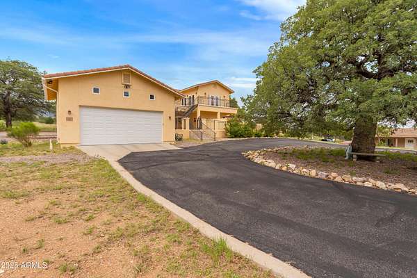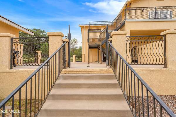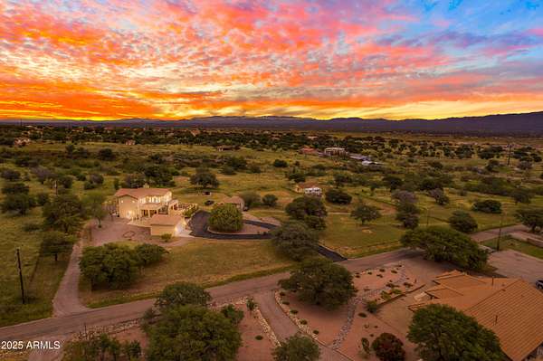 This truly unique home offers 2595 sq. ft. with 4 bedrooms and 2.5 bathrooms in the main residence. The open kitchen flows into a warm and inviting living space, centered around a gorgeous stone wood-burning fireplace. The primary suite is located on the main floor, while a stunning custom staircase leads to a spacious loft with family room and bar, the ultimate space for entertaining or relaxing. Upstairs, you'll find 3 bedrooms and a full bathroom, each with direct access to the nearly wraparound patio where you can soak in the incredible views of the historic Our Lady of Sierras Shrine. The property also includes a private guest quarter, 374 sq ft with a full bathroom ideal for extended family or visitors. There is also a full workshop equipped with electrical, water and covered patio that could easily be converted into another guest house or studio. All of this sits on nearly 10 acres of land, (two parcels being sold together). The main property features its own private well, while the adjoining property offers a two-part well share, providing flexibility and peace of mind. This is more than a home...it's a rare opportunity to own a private retreat in Hereford, AZ, with space, views, and endless potential.