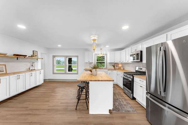 Peace, tranquility, and comfort are all found at this beautiful 2 story countryside ranch. Outside, you can enjoy the benefit of over 3 acres of land, a quiet pool on a hot summer day, and the quiet of country living. Inside, you are greeted with a spacious and modern kitchen that spills into an inviting living room. Beautiful stone finishings inside, large bedrooms, and multiple fireplaces! This place has it all! This house sits on a lot of land at just over 3.5 acres! More than enough room to enjoy the land, watch wildlife, or build a pole barn! Be sure to schedule a private showing to see this gem for yourself.