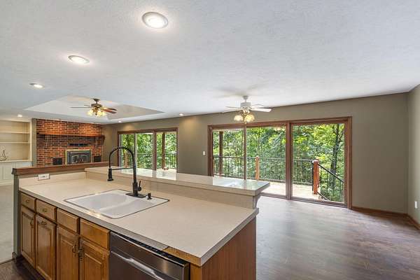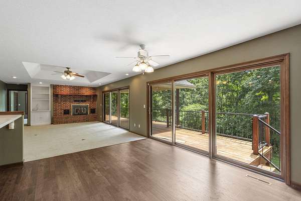 Welcome to this stunning 4,000 sq ft home nestled on 5 acres of beautiful, wooded land -- no neighbors in sight, just peaceful nature and total privacy! Step inside to discover fresh new flooring and paint throughout, creating a crisp and modern feel. This home features two spacious living rooms, two full kitchens, and an oversized John Deere room in the basement perfect for storage, hobbies, or your next project. 3 Full Bedrooms, 3 Full baths, large kitchen with custom wood cabinets, and new stainless-steel appliances. The large laundry room includes pantry space and direct access from outside, making it perfect for dropping off muddy boots or garden harvests.Enjoy mornings and evenings on the large covered back porch, taking in the sounds of nature. The property includes two versatile outbuildings for storage, workshop space, or turning it into a chicken coop! A sprinkler system keeps your lawn looking lush and green with minimal effort.Whether you're looking for multi-generational living, a homestead setup, or just your own private getaway -- this property offers it all with space, comfort, and privacy in one incredible package.This property is in the Strafford School District and in a very minimal distance to town!