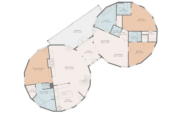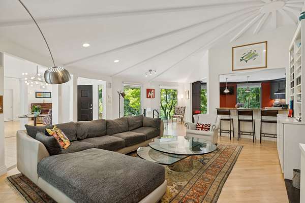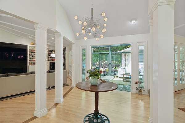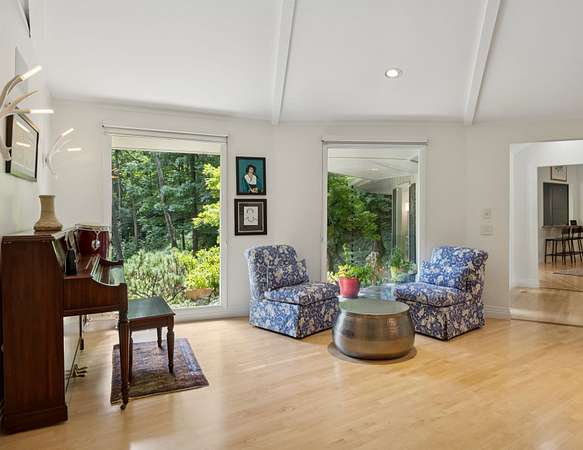 Tucked away at the end of a quiet cul-de-sac, this home offers unmatched privacy, thoughtful luxury, and artistic elegance on 3 wooded acres. Designed as two interconnected 12-sided structures anchored by a columned foyer, the open-concept layout provides a seamless flow of light and space that feels both distinctive and livable.
