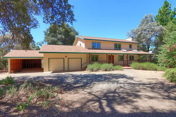 Amazing Custom Home with PaNoRaMiC VIEWS from this private mountain retreat! Just minutes from Yosemite National Park, Bass Lake, and other popular lakes for boating, fishing, house boating, and year-round recreation, this 4-bedroom, 2-bath residence offers 2,760 sq. ft. of inviting living space on 27.54 acres, only a short drive to the historic town of Mariposa. Step inside to discover beautiful wood-beamed ceilings, wood-encased windows, custom wood flooring, and a stunning river rock fireplace with slate hearth that bring warmth and rustic elegance to the main living area. The spacious kitchen boasts custom cabinetry, stainless steel appliances, and a walk-in pantry, opening to the dining area and expansive wrap-around deck with spaperfect for entertaining or simply taking in the spectacular views of the gardens, fruit trees, and wide-open skies. A versatile bedroom/office, bath, and a large laundry room with space for additional appliances complete the first floor. Upstairs features a bright open family/game room showcasing sweeping Sierra mountain views, three additional bedrooms, and a full bath. The oversized primary bedroom provides plenty of space to add a bath, if desired. Additional highlights include a fully paid solar system, private well, attached 2-car garage, several outbuildings plus an additional covered 2-car carportideal for a future conversion into a workshop or ADU. Outdoors, enjoy three fenced areas for gardening, pets, or farm animals, along with a detached deck for relaxation or entertaining. A true retreat designed for family and friendsclose to Yosemite and Mariposa, yet private and serene with sweeping scenic Sierra Mountain Views. The perfect blend of mountain living, rustic charm, and modern convenience!