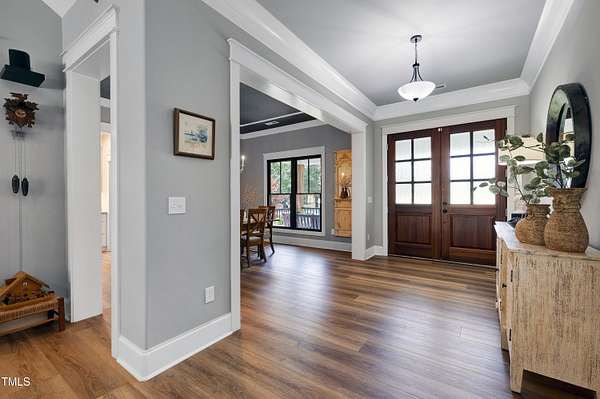 Welcome to 5859 Vicksboro Farm located on 16 beautiful acres. Home Site is 3 acres, and at least 10 Acres is in the Agricultural Land Present-Use Value Program. Additional 35 acres are available for purchase. Wonderful opportunity to live in the country, grow crops, raise chickens, and/or equestrian opportunity for horse owners. Custom Transitional Home with Open Floor Plan built in 2020. Absolutely Lovely Home. Spacious Family Room with Vaulted Ceiling Beams and Fireplace opening into Gourmet Kitchen with Center Island, real Quartz Countertops, Ample Custom Cabinets, under Cabinet Lighting and Stainless-Steel Thermador Gas Range, Wall Oven, Microwave, and Dishwasher. All 4 Bedrooms are located on First Floor. Primary Master Suite includes Luxurious Shower, soaking Bathtub, Dual Vanities, Toilet, and Bidet with Oversize Walkin Closet. Finished Recreation Room over Garage is ideal for Home Office or Entertainment. Home has Oversize 2 car Garage with EV Charging Station and Emergency Generator. Outside has Large Rear Deck with relaxing Wellis Hot Tub. Backyard is Fully Fenced for your Pet's safety. Evenings are perfect for Entertaining, Relaxing, or Watching the Sunset. Outside activities include Fishing and Boating at Kerr Lake and Lake Gaston. Home is located minutes from US1 Hwy and I-85 South to Raleigh, Durham, RDU International airport, and Research Triangle Park.