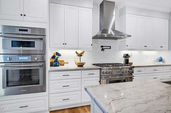 - Convection Oven, Double Oven, ENERGY STAR Qualified Appliances, ENERGY STAR Qualified Dishwasher, Electric Water Heater, Free-Standing Range, Ice Maker, Microwave, Plumbed For Ice Maker, Range Hood, Refrigerator, Self Cleaning Oven, Stainless Steel Appliance(s), Vented Exhaust Fan, Wall Oven, Wine Cooler