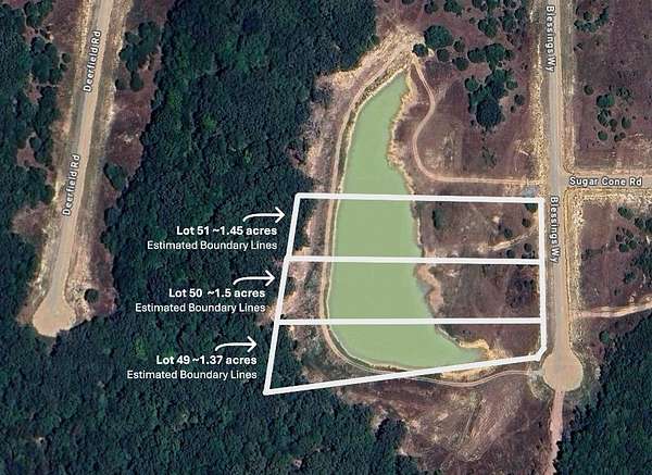 Once in a lifetime opportunity to build the waterfront home of your dreams on land we call, Whispering Waters! Yes, you read that right - waterfront. And the location - only 16 miles from Denison, Texas and 12 miles to Durant, Oklahoma makes this building site for sale near Colbert, Oklahoma the most convenient location for being close to work, restaurants, shopping, golfing, movie theatre, arcade, bowling, Lake Texoma with boating and fishing at Burns Flat lake ramp, and the Choctaw Casino. Even with all these amenities so close, you may never want to leave your home by the water. Think of the cookouts, bonfires, parties, holidays you can host where your backyard is literally a few steps from the water's edge! And when it is too cold to be outside, you can build your home with spectacular views from large windows across the back of your home. If you build a two-story home, you could have fantastic views of the water from not only second-story windows, but also any balconies you might want to build. If building your home on a waterfront building site sounds like the perfect lifestyle for you, I must let you know that there are only three of these waterfront building sites still available. One of the most important benefits of building waterfront in the Cedar Creek Subdivision is that only landowners who own waterfront property have access to use the lake so no trespassing across your yard. There are only six waterfront lots total that would qualify for use of the lake. One of the three available waterfront building sites for sale is #51. Appx 1.45 acres and ~120 ft wide by ~525 ft deep - see survey for exact dimensions. This waterfront building site is located near the cul-de-sac on Blessings Way. Electric and water lines are buried along the roads throughout the subdivision. Buyers are responsible for installing septic system, purchasing water meter from City of Achille and running utility lines to their building site. Subdivision roads are river rock and maintained by Bryan County Commissioners. Cedar Creek Subdivision has restrictions and covenants, such as 1,200 sq ft minimum living space with any type of exterior. Log, stone, brick, rock, siding... barndominiums are welcomed, too! No HOA and no manufactured homes such as double wide or single wide mobile homes. Ask for a complete list of restrictions and covenants and start planning today for a relaxed lifestyle in a country setting on an exclusive waterfront building site in the Cedar Creek Subdivision located off Hwy 91 just seven miles East of Colbert, Oklahoma. PS: The corners of each building site are marked with a wooden stake and the lot numbers are on metal t-posts. This is raw land. You must get out and explore it. Picture your dream house situated on the land and imagine a landscaped backyard leading down to the waters edge. Imagine a fishing pole in your hand or kayaking across the water. The possibilities are endless so let your imagination take over! Call today to get all the details on the three remaining waterfront building sites for sale near Colbert, Oklahoma.