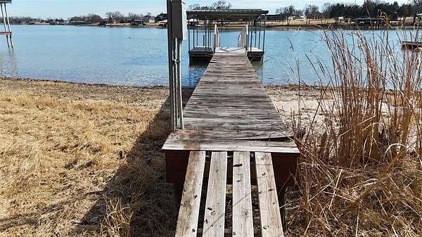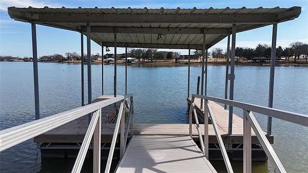 From the moment you arrive, the property feels established and ready. A defined homesite is already in place, guiding your vision forward, while the gentle slope leads you naturally toward the water's edge. The shoreline is secured with a steel retaining wall, offering both peace of mind and a clean, polished waterfront presence. Just beyond, your covered dock waits--perfect for early-morning fishing lines, sunset cruises, or quiet afternoons watching the water shimmer under open skies.