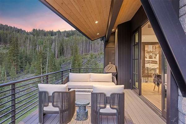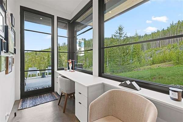 This unique mountain contemporary home on 2.42 private acres in the coveted Highlands neighborhood, bordered by National Forest, offers unmatched serenity and seclusion. Enjoy panoramic continental divide views from both upper and lower decks and three cozy fireplaces, ideal for year-round entertaining.