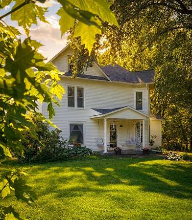 Here's your opportunity to own over 14.1 (+/-) acres of peaceful Iowa countryside-complete with timber, tillable ground, and a beautifully preserved Victorian-era farmhouse that's ready to live out your homesteading dreams. This property is already set up for livestock and horses, offering the ideal environment for grazing, riding, and rural living-all less than a mile off pavement in Boone County. The 3-story home is as charming as it is functional, with over 2,780 square feet of carefully renovated space. The main floor features a spacious primary suite with a large walk-in closet, double pocket doors, and a fully remodeled bathroom with a walk-in shower and deep clawfoot soaking tub. The bathroom also connects to the front living room, making it easily accessible for guests while still offering privacy. You'll also find main-level laundry, a beautifully updated kitchen with new cabinets, countertops, flooring, and a farmhouse sink, as well as two living areas-one showcasing a cozy wood-burning fireplace, vaulted ceilings, and French doors to a concrete courtyard perfect for entertaining or relaxing. Upstairs, three oversized bedrooms include generous walk-in closets and sweeping views of your acreage. A second bathroom and a finished third-floor bonus space with skylights round out the upper levels-perfect for a playroom, office, or guest suite. Outside, the property shines as a true acreage setup for hobby farming or horses. A large barn with two lofts, a detached two-car garage/workshop with a loft, a machine shed with concrete flooring, and a brand-new pole building provide endless space for equipment, hobbies, or animals. The oversized 2.5-stall attached garage connects to a spacious mudroom and walk-in pantry ideal for canning, storage, and daily use. The garden is already productive, surrounded by fruit trees and perennial blooms. Xenia Rural Water serves the home, and two working wells support outdoor watering and livestock-with an automatic livestock waterer already in place. Fencing, open pasture, and wooded areas combine to make this property especially appealing for horse owners and outdoor enthusiasts alike. Whether you're looking to ride, raise animals, grow your own food, or settle into a slower pace surrounded by nature, this property delivers the space, setting, and comfort to make it happen. All that's missing is you-call today!