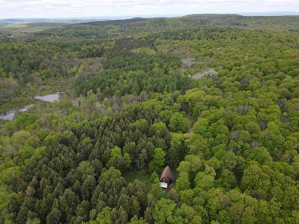 Built with stones and logs from the 30+ acres, this is the ultimate secluded off-grid secondary getaway and/or hunting camp. Situated on a gravel seasonal road, on one of a handful of privately owned parcels that are nearly surrounded by the 1,460 acre Cherry Valley State Forest. The cabin consists of three levels, and offers all the comforts of home operated off a generator and 12 volt battery system. The first level has a kitchen area, wood/coal burning stove, small sitting area, a storage/utility room, and a full bath. The second floor has three sizeable bedrooms and a small deck overlooking the property. The third floor is entirely open with a living room area, additional beds, and lots of storage space for your gear. Four propane tanks are filled periodically that supply secondary wall mounted heaters, the stove, and the refrigerator. Outside you will find 30.32 acres of wilderness, with groomed trails throughout, and significant marketable standing timber. Excellent hunting opportunities, with deer sign in all directions. If that isn't enough, you can simply walk across the road and explore 1.460 acres of state forest! Located only 15 minutes from the Village of Cherry Valley and 25 minutes from the historic Village of Cooperstown, where you will find all the essentials, restaurants, beautiful Otsego Lake, and world class museums. The cabin is being sold fully furnished and in "As Is" condition.
