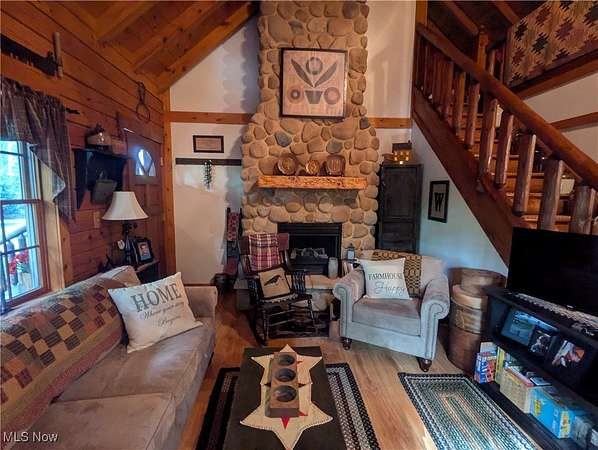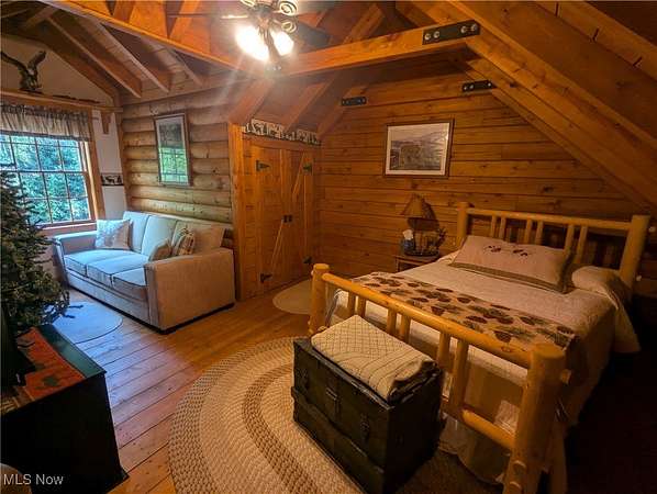 Meet the Wildlife and Your Dream Home! Feels like a Peaceful Vacation in the middle of the woods! Perfect for outdoor enthusiasts! Enjoy this Beautiful Log Cabin that features almost 9 acres, very private driveway, a Generator that runs almost the entire home if the power ever goes out. Electric and Wi-Fi is underground (huge plus for being surrounded by trees), no power lines to be concerned about. Includes 2 heat sources, Private175 ft deep well, Loft, 2 Car Garage with a room above Garage, Eat in Kitchen, Beautiful Masonry stone work on the propane fireplace in Main Living Room, 2 Laundry Rooms including 1 on the Main Floor with cabinetry, sink, and built in pantry. Home also features Lean-to, Greenhouse, small pond. fire pit area, Large outdoor Barn Building with an upstairs with windows, Gazebo, Outside Chimney and sitting area, beautiful landscaping, and much more! Polaris with snow plow stays and a John Deere tractor stays as well. New Hot Water Tank installed in 2020. New Metal Roof installed in 2020. This Home is a MUST SEE!