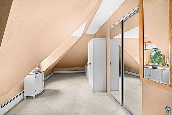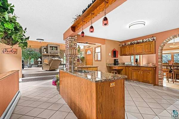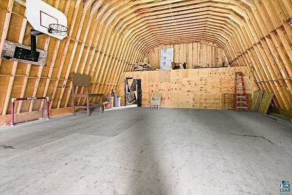 Step into a storybook setting with this unique Hermantown haven, perfectly blending historic cottage appeal with vast acreage. This 4-bedroom, 2-bath gem offers an immediately inviting warmth and a rare level of detail throughout. The great room welcomes you with vaulted ceilings, a wood-burning fireplace with heat chamber, rich brick accents, and ash tongue-and-groove paneling. An acoustic-tiled ceiling and skylight add light and character, enhancing the home’s cozy elegance. The kitchen features quartz countertops installed just five years ago, tile flooring, and classic oak cabinetry, flowing into a dining room adorned with beautiful original hardwood floors. The main-floor bathroom—fully remodeled in 2020—creates a spa-like retreat with a jetted whirlpool tub, tile flooring, and a cedar ceiling. Upstairs, the spacious primary suite includes generous closet space plus a walk-in closet already plumbed for a potential third bathroom, making future expansion easy. The finished basement adds even more versatility with a 3-year-old epoxy floor, 2 bedrooms with egress and storage spaces. Car enthusiasts, hobbyists, and dreamers will love the impressive 36x57, 3+ car detached garage with a heated slab, dedicated workshop area, and a huge gambrel loft ready for finishing—imagine a studio, sport court, guest space, or creative haven. Outdoors, this property shines year-round. Enjoy a true Northland wood-fired sauna with a dressing room, running water, and a cozy loft above. In winter, a lighted pond creates a magical skating spot, while warmer months bring mowed trails through the pines, perennial gardens, mature fruit trees, and abundant raspberries and blackberries. More than 6,000 new Spruce and Norway Pines have been planted over the past decade, enhancing the property’s beauty and privacy. The original home was built in the early 1900s; major addition and remodel completed in fall 1992. Upon acceptable offer, the seller will install a new septic system for a 4-bedroom home and a new blacktopped driveway over the portion that will be disturbed during septic installation. Electric: $277/mo average