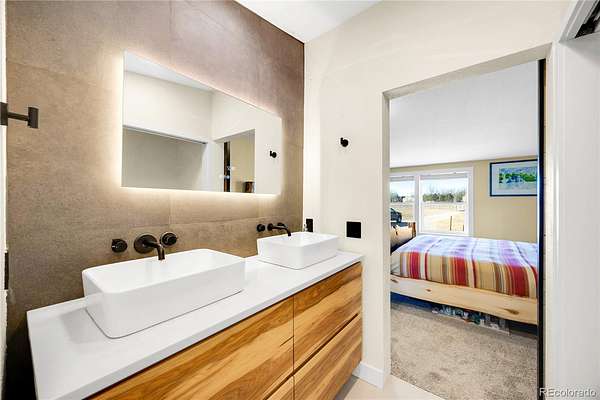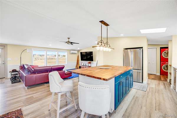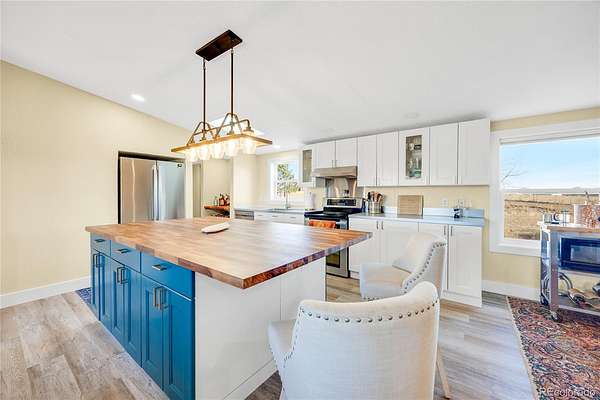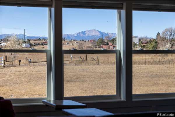 Set on 5 pristine acres in Peyton, this beautifully updated ranch-style home delivers the space you’ve been craving—without giving up the conveniences you need. Zoned for horses, fiber-optic internet, solar wiring, and a 3-car detached garage make this property a rare blend of rural freedom and modern function. Inside, an open, light-filled layout welcomes you with big Colorado views from nearly every window. The living room flows effortlessly into a fully updated kitchen featuring statement cabinetry, a butcher-block island, modern pendant lighting, and stainless-steel appliances—perfect for hosting, holidays, or quiet nights at home. Your primary suite is a true retreat, featuring a stylish barn-door walk-in closet and a spa-inspired bath with heated floors, dual vessel sinks, and an LED-lit vanity mirror. Step outside and take in unobstructed Pikes Peak views, wide-open skies, and endless room to build your dream—animals, shop, garden, arena, trails, you name it. And when you need to go out, you’re just minutes from Falcon shopping, dining, and an easy commute to Colorado Springs. Homes with this much land, this many upgrades, and this kind of view don’t last—schedule your private showing today and come experience what 5 acres feels like in person.