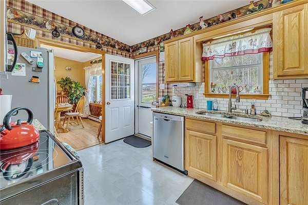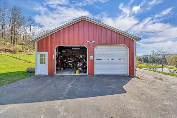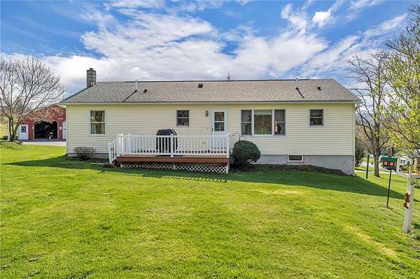 Scenic Ranch on 30.78 Acres with Pond, Pasture & Pole Barn Experience the beauty of country living with this well-maintained 2004 ranch home set on 30.78 picturesque acres, offering breathtaking views in every direction. This 3-bedroom, 2-bath home features a functional layout with a one-car attached garage and thoughtful updates throughout. Step inside to find warm hickory hardwood floors in select rooms, a stylish kitchen with granite countertops, tile backsplash, and a built-in large cabinet providing ample storage. The home opens up to a beautiful deck- perfect for relaxing and enjoying the surrounding landscape. The property is equally impressive outdoors. Approximately 20 acres are fenced pasture, ideal for livestock or hobby farming. A Pristine 30' X 64' pole barn (built in 2002), previously used for heifers, offers excellent space for agricultural use, storage or equipment. A 1/2-acre pond enhances the setting near the barn, and two additional small ponds are on the upper portion of the property, while a variety of mature trees including maple, ash, cherry, hemlock, weeping willow, and pine, providing natural beauty and privacy. Additional features include a blacktop driveway, three outdoor water hydrants, and access to REA electric service. Located in desirable Mt. Markham School District, this property combines rural charm with practical amenities, perfect for those seeking space, views and versatility. Call for a private showing! Susan Carpenter CARE Brokerage