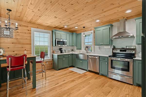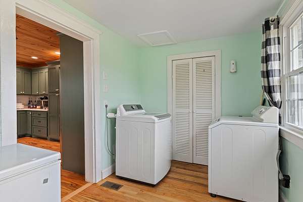 The kitchen has been equipped with custom cabinets by Cooks Custom Finishes, the counter tops are white quarts, all the floors except the bathrooms have been equipped with beautiful 3/4-inch Ambrose Maple hard wood. The shiplap ceilings in the kitchen compliment the hardwood floors and the accent wood walls in the living room, and the pellet fed stove bring back the charm and warmth of this wonderful farm home.