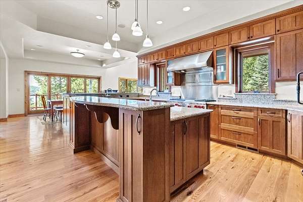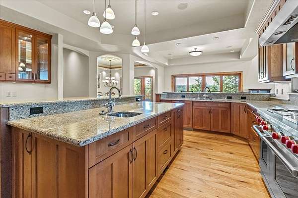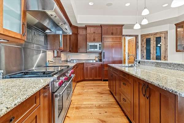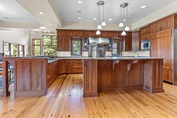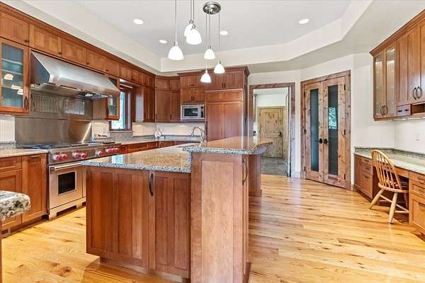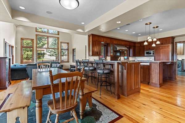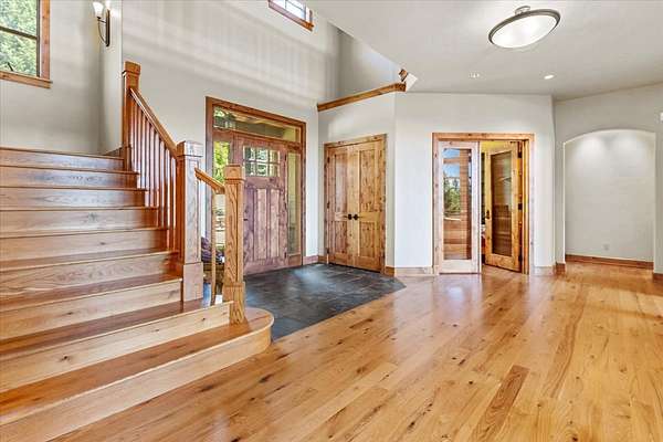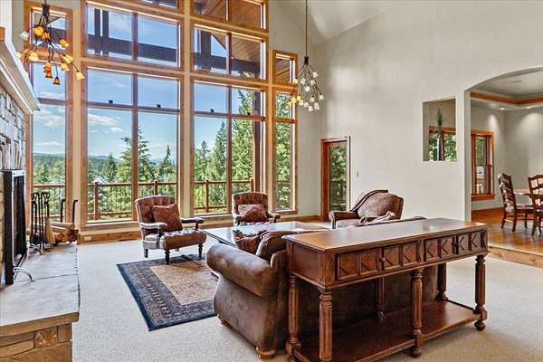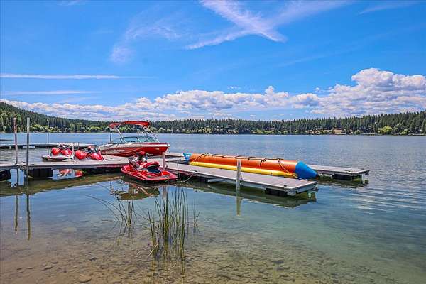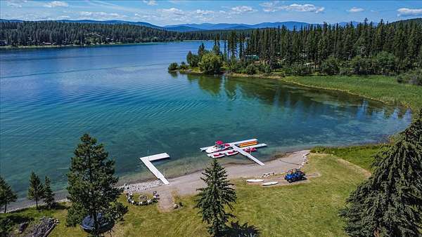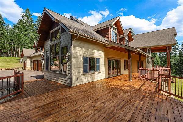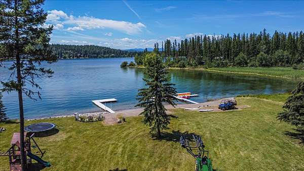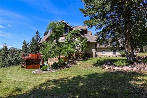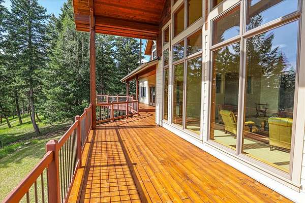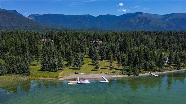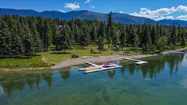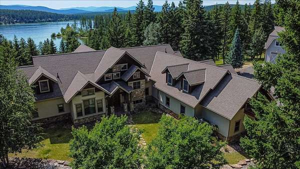 Acreage added! This multi generational lakefront property is truly the last of its kind. Built before prime land was scarce this Montana retreat sprawls out over 13 acres and boasts private shoreline, lush meadows and manicured forests. Leave the world behind as you enter the gated drive and circle to the majestic home situated at the crest of the rolling hills to maximize breathtaking lake views from every level. The expansive decks and covered patios span the length of the home creating a serene setting that looks out across the mature trees to the shimmering shores of the lake. The open floor plan boasts vaulted windows that frame the lake views and maximize natural light throughout. The towering wood timbers, spacious balconies and massive stone fireplaces create the perfect backdrop for large gatherings or quiet evenings by the fire. Endless recreation awaits just minutes from Montana's #1 golf course and 45 min. from 2 world class ski resorts. The lakefront lot boasts over 200' of shoreline complete with docks and boat slips for months of summer fun. Amenities include a commercial kitchen with custom granite and a large walk in pantry, 1000+ sqft state of the art theater room with 13 stadium seats, 2592 sqft shop/toy barn with 850 sqft (1 bed, 2 bath finished guest quarters.) and a total of 6 car parking including the 3 car attached garage and RV hookups. 2 Master suites (one main level, one upstairs), an oversized hot tub that adjoins the master suite and looks out over the lake, a bonus hockey play room, red oak floors throughout, coffered ceilings, 2 rock (gas) fireplaces, 3 laundry rooms, office/workout room, library, irrigation system around the home, built in speakers in nearly every room, Vantage lighting system, radiant floor heat, central air, central vacuum, security system, Venmar whole-house air circulation system and a walk in safe.