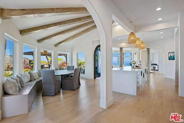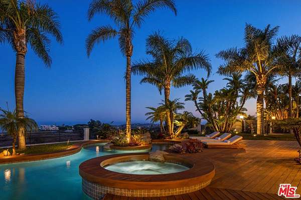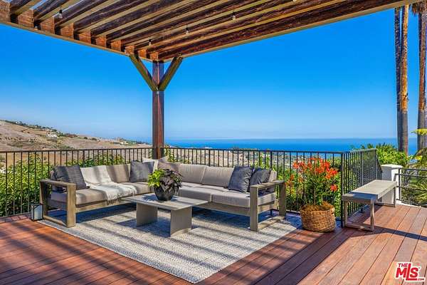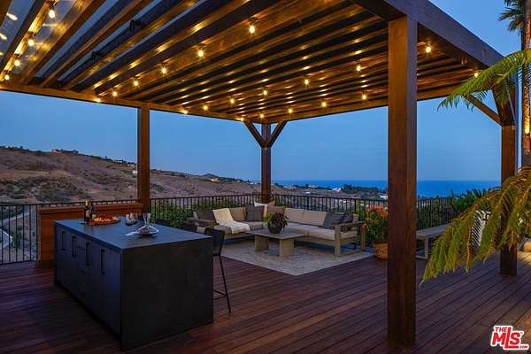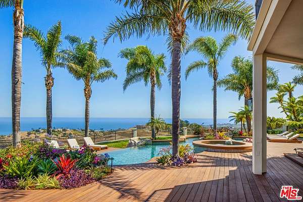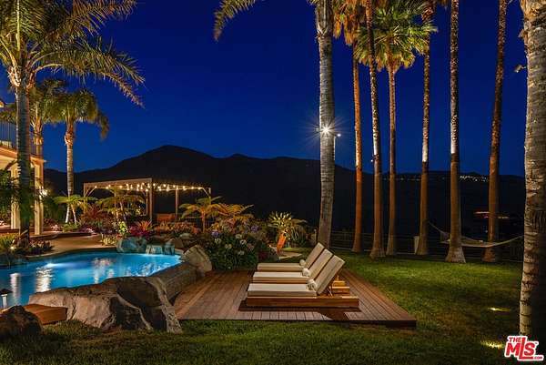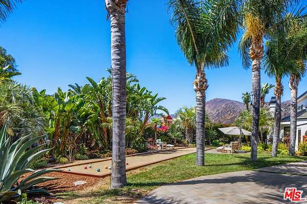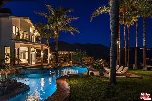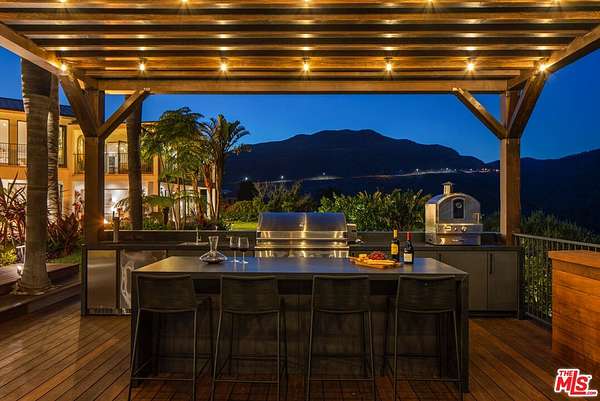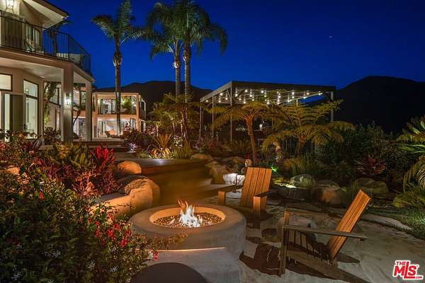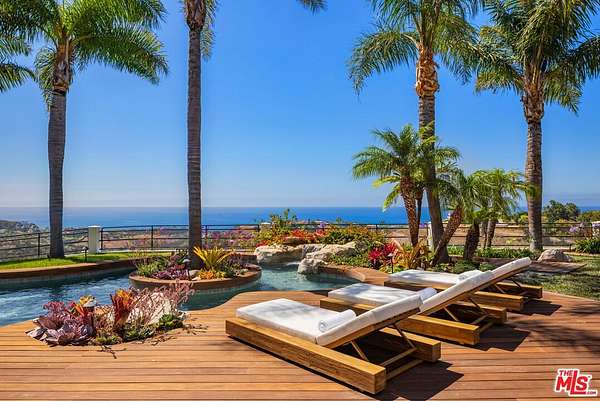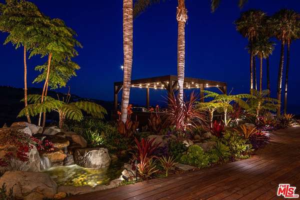 Nestled amidst the stunning backdrop of rolling hills and palm trees of Malibu, 5868 Zumirez emerges as more than just a luxurious residence, it's a haven of health, wellness, and tranquility. Only two minutes from PCH, this 3+ acre resort-style residence provides unrivaled luxury and absolute privacy. With its expansive 9,200+ square feet, your private paradise boasts panoramic 360-degree views of both the vast ocean and the serene canyon, creating a retreat like no other. Seamlessly merging indoor and outdoor living, it is enveloped by a lush, tropical landscape, 6000 square feet of Ipe decks, soothing lagoons and saltwater pool and spa, a detached studio, multiple firepits, a Bocce Ball court, meandering streams, a gazebo and an outdoor kitchen featuring a barbeque, kegerator, pizza oven, and outdoor big screen TV. Meticulously designed to enhance your health and rejuvenation, this estate further offers an array of amenities including a cold plunge, sauna, steam room, yoga studio, gym, alkaline water, organic gardens, and much more. An entertainers dream, the home's soaring ceilings, massive windows, white oak floors, high-end appliances, formal living and dining rooms and chef's kitchen with expansive island and built-in banquet make hosting easy and enjoyable. A spacious great room, complete with restaurant size wet bar and fireplace seating, opens through a 21 ft wide bifold door to a vast ocean view deck outside. The upper level features 5 en-suite bedrooms with 360 degree views and patios off of every room. The vast ocean view owner's suite boasts a double-sided fireplace, lounging area, private deck, two bathrooms, and huge closets. A secondary primary ocean view suite w/double sided fireplace, luxe bath & wrap around private deck is equally special. Topping it all off, there is a temperature-controlled, glass-enclosed wine cellar with 550 bottle capacity, an executive office/study, a 3-car garage, and smart home voice tech for lights, music, temp & pool. Total water filtration includes showers & pool/spa. Contact for short term rental pricing. Available to show after April 10.