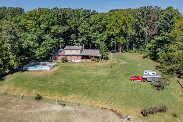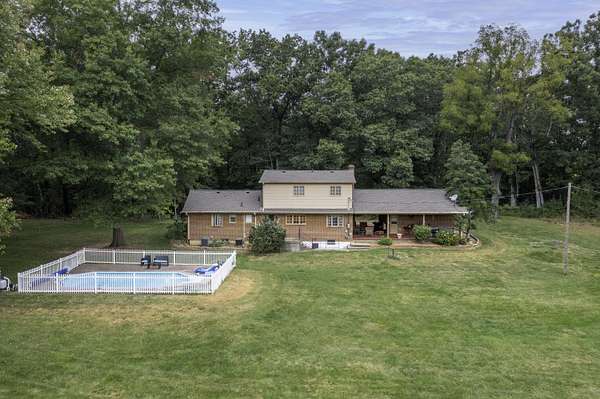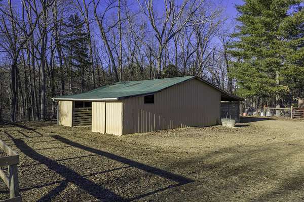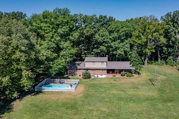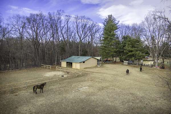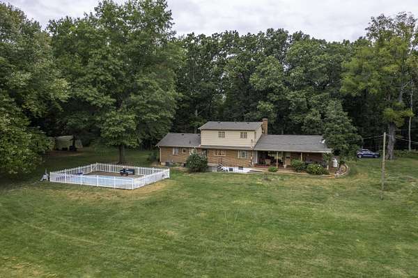 Bring your horses! Or alpacas! Privacy on total 9.58 acres -- with over 7 acres of rich, fenced pasture bordered by forest -- featuring seasonal views of the Blue Ridge Mtns. 8 stall horse barn w/ 2 convertible birthing stalls, water hydrant. Riding ring! Just 12 minutes from downtown Lexington and Buena Vista, W&L, VMI and SVU. Rockbridge County boasts the VA Horse Center! Hop on I-81 to Roanoke, Staunton and Charlottesville. This cozy Cape Cod is sided with brick and requires little maintenance. New roof installed in March 2024. 5 bedrooms allow for a large family, or frequent guests! 2-car garage has space for a workshop. Enjoy cocktails while cooling in your lovely in-ground pool! Picnic in the covered breezeway while watching TV -- and your horses.