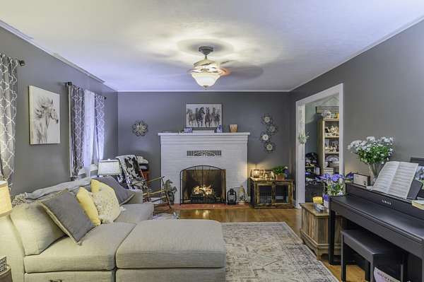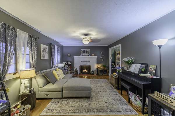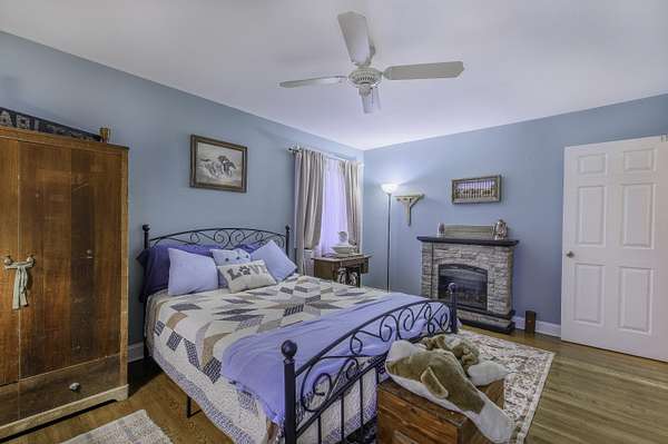 - Book Shelves, Ceiling Fan, Fireplace, Walk-In Closet, Workshop