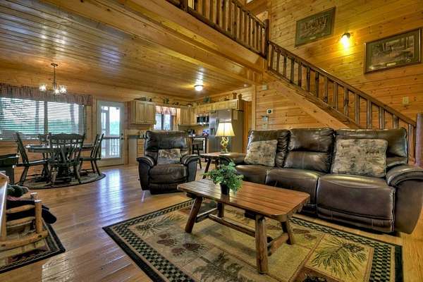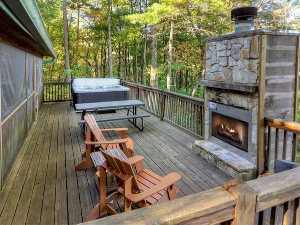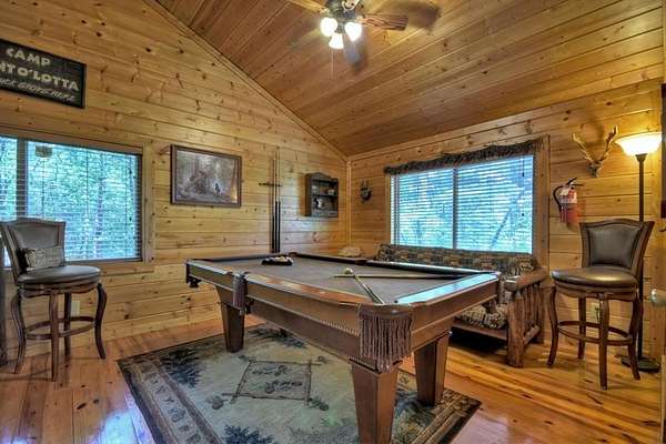 Charming 2BR/2BA Ellijay cabin with year-round, long-range mountain views and strong vacation rental potential. Currently a successful short-term rental, this property offers both income opportunity and a perfect personal retreat. Enjoy the expansive deck with stunning views, ample seating, and an outdoor fireplace—ideal for relaxing mornings or cozy evenings. Inside, the warm wood interior features a floor-to-ceiling stacked stone fireplace, open living area, and a fully equipped kitchen with stainless steel appliances. The loft includes a full-size pool table for added entertainment, while two comfortable bedrooms, King with private bath on upper and Queen on main level, provide ideal accommodations. Pet-friendly and designed for mountain living, this cabin is just minutes from downtown Ellijay, hiking trails, and local attractions. A true turnkey investment or private getaway in the North Georgia mountains.