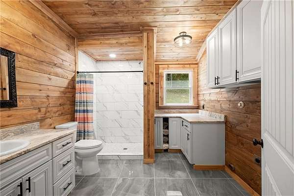 Brand NEW custom personal built ENERGY EFFICIENT LOG Cabin. Granite counter tops, top of line appliances, tile bathrooms, large master closet. The Cabin on the mountain is set on 5.19 acres, decently cleared around the house and front yard, yet it is set back far enough for some private front porch sitting with some woods for privacy to enjoy mother nature and all the wildlife that cruises by. The cabin is set up with a home generator, storage shed, and a small shed/workshop. All interior items stay. This is mountain living at it's best!