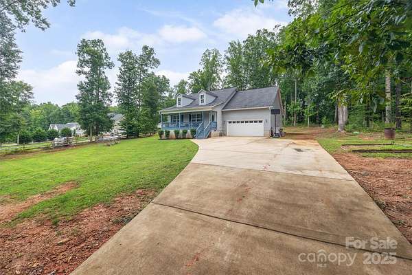 Tucked away on 1.69 private, wooded acres in York, SC, this charming 3-bedroom, 2-bath ranch offers peaceful country living with modern comfort. Built in 2016, this single-story home welcomes you with a spacious covered front porch - perfect for enjoying your morning coffee. Inside, you'll find an inviting living area with vaulted ceilings and a striking wood accent wall that adds warmth and character. The kitchen features granite countertops, a center island ideal for entertaining, and a dedicated pantry for extra storage. You'll also enjoy the benefit of a whole-home water filtration system, along with a reverse osmosis system for drinking water- complete with a separate spigot at the kitchen sink and a connection to the refrigerator. Out back, relax on the covered porch and take in the serene surroundings. Additional features include gutter guards for low-maintenance upkeep. With no HOA and room to roam, this property offers a rare combination of privacy, functionality, and style.