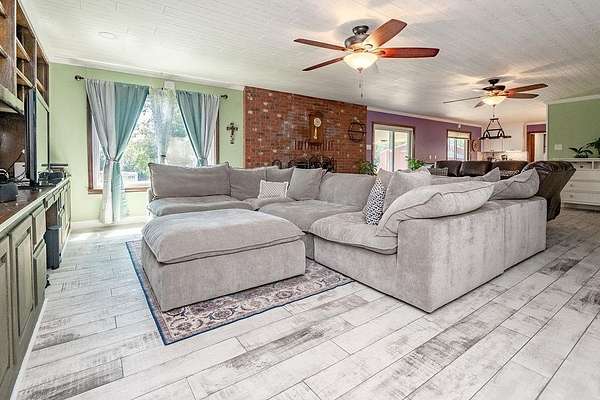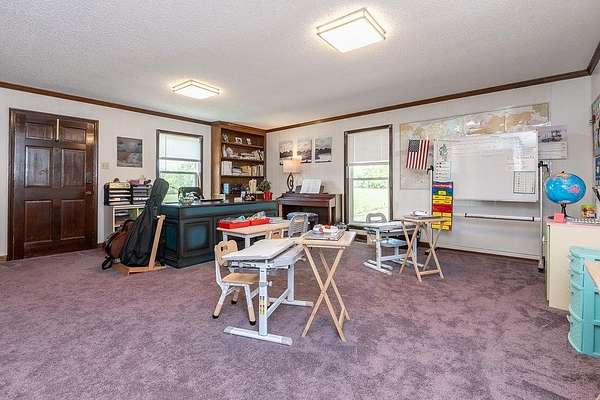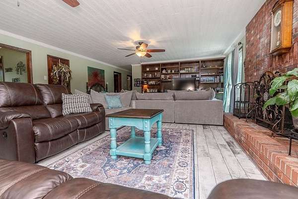 Discover country living at its finest! This spacious 4-bedroom, 2.5-bath home with a bonus room offers over 3,500 heated sq. ft. on 25.4 acres and features a complete kitchen remodel with new cabinets, butcher block island, farm sink, and a commercial gas stove with double oven. New tile flooring in all common areas, recessed lighting, and Simonton windows provide modern comfort. A large main-level office, oversized laundry room, huge walk-in attic, high-quality air purification systems, wireless booster, and driveway alarm add everyday convenience. Outdoor living shines with a Yoderbilt greenhouse, 60x40 shop with electric, extensive garden beds, chicken coops, a private pond, and sparkling pool. A producing orchard with apples, pears, figs, berries, and more makes this property a true homestead retreat!