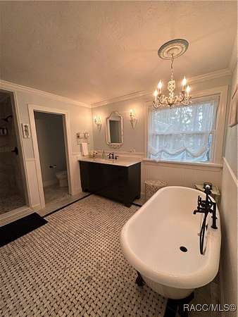 - Bathtub, Cathedral Ceilings, Fireplace, Primary Suite, Separate Shower, Stone Counters, Tub Shower, Updated Kitchen