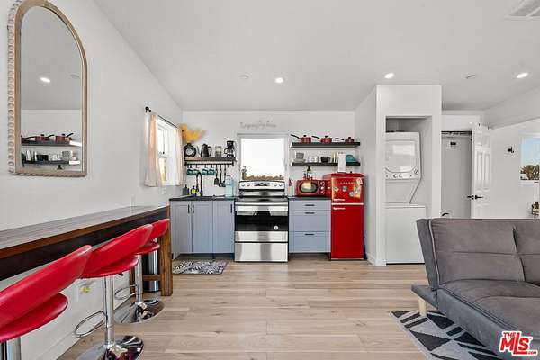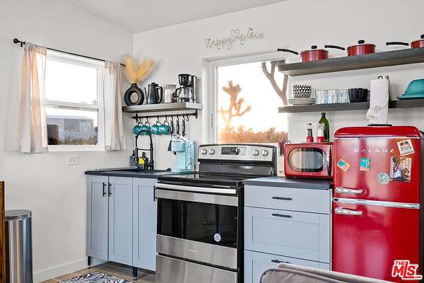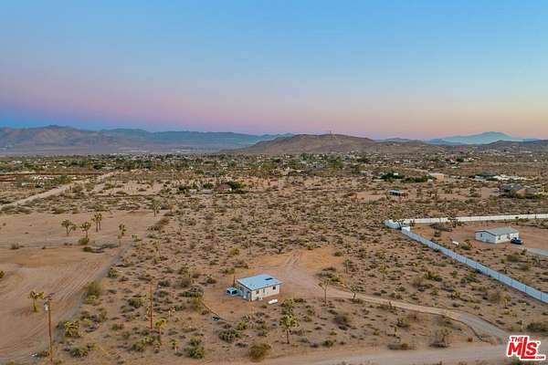 Welcome to Desert Rose - a design-forward micro cabin nestled on 5 serene acres atop the mesa of Yucca Valley. This mid-century-inspired bungalow offers the perfect blend of charm, privacy, and potential - ideal as a personal escape, a successful short-term rental, or the foundation for future development. Inside, you'll find wide-plank floors, an open-concept layout, and sun-filled interiors that feel both cozy and spacious. Thoughtful touches throughout create a peaceful, modern desert aesthetic that connects effortlessly with the surrounding landscape. Outside, unwind under the stars in your private hot tub, sway gently in hammocks amongst the Joshua Trees and let the soft glow of bistro lights set the mood for slow, dreamy evenings. With 5 acres of flat, buildable land, there's room to add structures, create a compound, or subdivide - all while enjoying uninterrupted views and total seclusion. Currently a highly rated Airbnb, this property offers a turn-key investment opportunity with a proven track record of guest satisfaction and income potential. Whether you're seeking simplicity, inspiration, or income, this petite hideaway is a rare and beautiful opportunity in the heart of the High Desert.