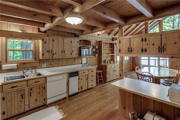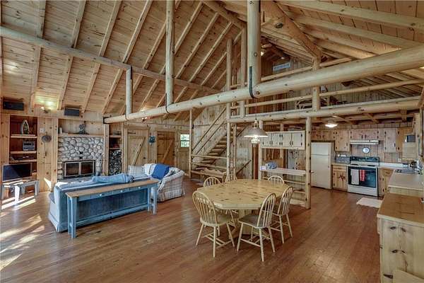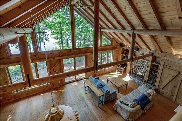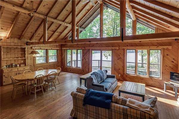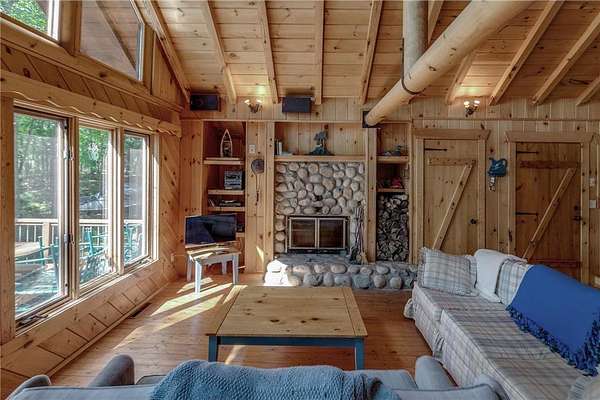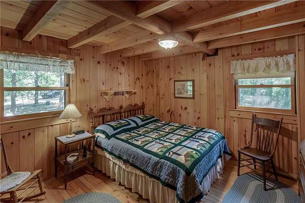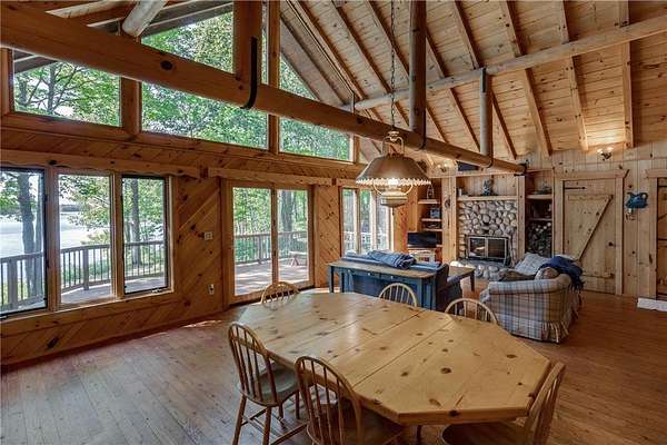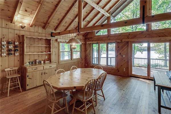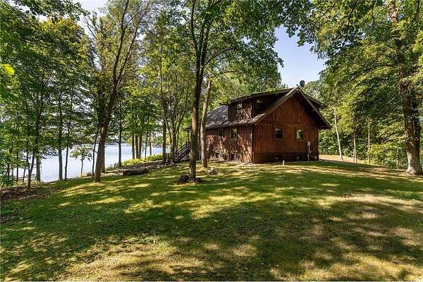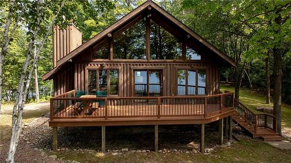 Discover the ultimate up-north retreat with this unique, once in a lifetime property on Long Lake by Longville. Offering 1,040 feet of pristine shoreline and over 2 acres of wooded privacy, this property is nestled at the very tip of a peninsula. providing unmatched seclusion, stunning lake views, and direct access to one of the area's favorite lakes. Long Lake is well known for its depth, superb water clarity, and great fishing. Offering walleye, northern pike, trout, bass, and panfish, making it a true angler's paradise right outside your front door. The property is covered with a variety of hardwood trees, enhancing the natural beauty and wildlife appeal. This chalet-style cabin features 4 bedrooms, 2 baths, and a full unfinished walkout basement, giving you plenty of room to expand or customize. Showcasing log accents inside and out, the home highlights beautiful natural woodwork throughout, anchored by a stone, wood-burning fireplace. The open floor plan and expansive lakeside windows flood the interior with natural light while offering panoramic views across the lake to National Forestry land that will never be developed. Enjoy the outdoors from the spacious deck, perfect for entertaining or quiet evenings taking in the views. A gently sloping woodchip trail leads to the hard-bottom shoreline and dock, making lake access ideal for swimming, boating, and fishing. Just minutes away, the charming town of Longville offers year-round activities and small-town charm--from the famous turtle races, farmer markets, restaurants, and boutique shops to nearby snowmobile and ATV trails, hiking and hunting in the Chippewa National Forest, and endless additional lakes to explore. Whether you're looking for a year-round home or a seasonal getaway, this property offers the best of lake living, privacy, beauty, recreation, and a vibrant community just a short drive away. You don't want to miss the virtual tour on this one!