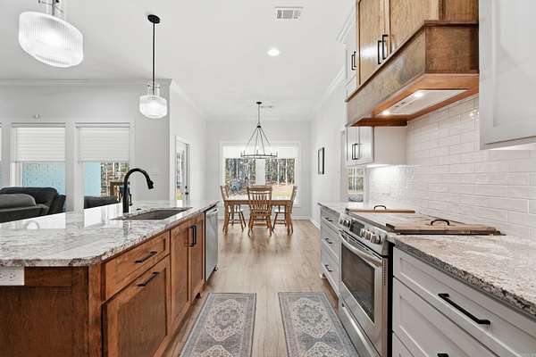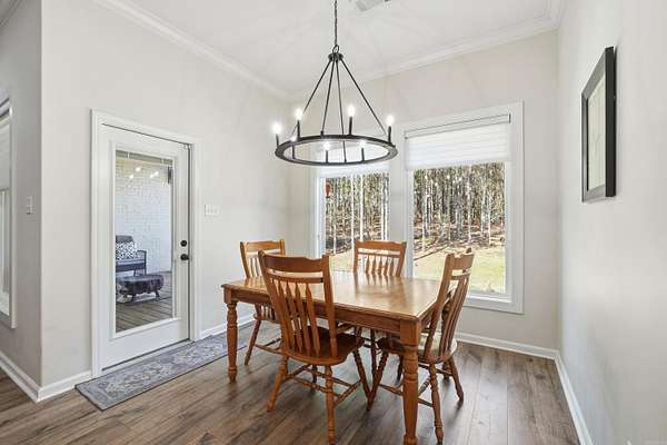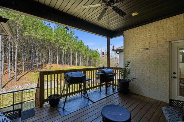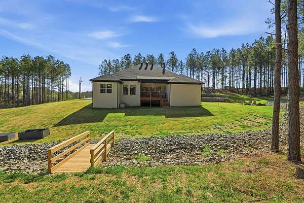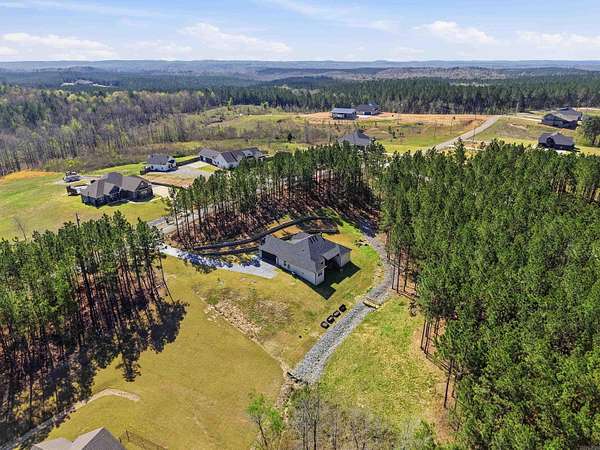 Beautiful one-level home on 2 private acres offering 4 bedrooms, 3 full bathrooms, and a dedicated office—conveniently located for commuting to Hot Springs, Little Rock, or Benton. Open-concept layout with tall ceilings, abundant natural light, beautiful flooring, and a brick fireplace with custom built-ins. Kitchen features a large island, granite countertops, stainless steel appliances, and custom cabinetry. Spacious primary suite includes dual vanities, soaking tub, and tiled walk-in shower. Covered back deck overlooks wooded acreage with custom stone fire pit and professionally terraced landscaping. Additional features include oversized heated and insulated garage with workspace and special coating on driveway and sidewalk. Agents see remarks and documents for more details on updates.