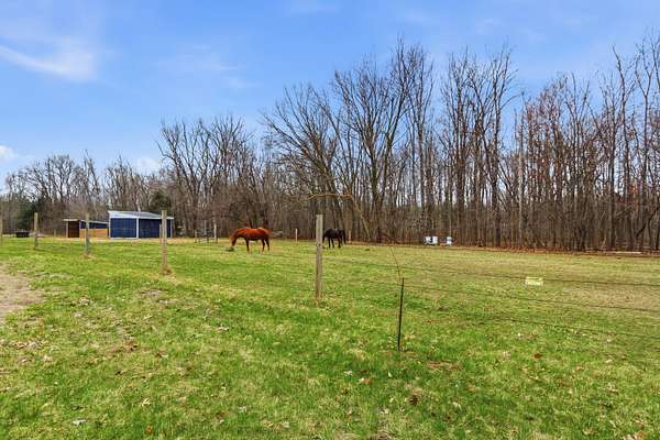 Charming 3-bedroom brick ranch on 5 horse-ready acres in Lyon Township! Built in 1958, this home offers a functional layout with a spacious living room, cozy family room, and a kitchen with eating space. One full bath and a full unfinished basement provide great potential, featuring laundry, a fireplace, and a canning/cellar room. Major updates include a new septic system (2024), roof (2025), and gutters with improved grading (2026). The property is ideal for hobby farming or equestrian use, with three pastures featuring wood and braided electric fencing, plus two run-in shelters (20'x12' and 16'x12'). The barn includes a 38'x13' stable with three 12'x12' matted stalls and cement aisle, along with a 20'x30' storage area for hay and tack. Additional highlights include a 20'x24' detached garage and a chicken coop. Conveniently located near Kensington, Proud Lake, and Brighton riding trails. WANT MORE INFO? Click the Virtual Tour link which has much more detailed information, an enhanced photo gallery and 3D walkthroughs! Do not go to the property without an appointment.