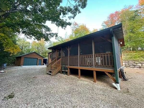 If you are looking for an amazing Northwoods camp, you've just found it. Location is ideal if you hunt, fish, UTV, snowmobile, ride horse, you name it. You are surrounded by all the possibilities & property adjoins Nicolet National Forest. Sawyer lake boat launch is walking distance. Quality built & efficient, full log, year round home has top of the line workmanship, an 8x22' screen porch, oak flooring, top of the line appliances, granite countertops, on demand water heater, forced air heat & air, 200 amp electric service, metal roof, full cement crawl space, rv hook-ups, underground lp, electric & fiberoptic lines, 1+ car insulated & matching log sided garage, beautifully landscaped w/large rock retaining wall & drain system installed under driveway. Home was manufactured & brought on site in 2016.