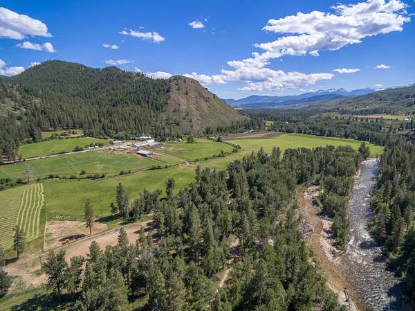 Welcome to the Chewack River Ranch, a one-of-a-kind working cattle and dude ranch nestled in the heart of the Methow Valley, one of Washington's most sought-after rural communities. This ranch has a rich history of being a productive Charolais Cattle ranch through multiple generations. The 516+- acres span from the Chewuch River banks across a valley of fertile farmland and up the west-facing slope to 3,100+- feet in elevation, where you can enjoy captivating views of the surrounding mountains and the valley below.