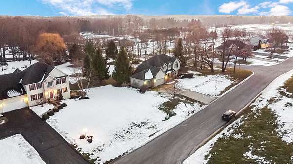 READY TO MOVE IN HOME ON PREMIER CORNER LOT WITHIN COVETED JACKSON TOWNSHIP. This Elevated space delivers stunning quartz countertops in the kitchen, a theme of luxury that extends into the bespoke laundry suite. The expansive living, dining, and executive office spaces are unified by stylish laminate flooring, creating a fluid, light-filled aesthetic. The Primary Suite is a voluminous sanctuary defined by soaring vaulted ceilings. The spa-inspired ensuite features a private water closet and a sprawling walk-in wardrobe curated for the fashion-forward. Indulge in an atmosphere of refined luxury with integrated ambient audio speakers providing a curated soundtrack throughout the primary living spaces and the lower level. The basement is a masterclass in design featuring soaring tray ceilings and a showpiece wet bar that rivals the finest private lounges. Outside enjoy the New deck for the above ground pool with major updates already handled, and for the hobbyist or collector, the detached garage comes complete with power, ready for you to enjoy. Offering a seamless blend of grand entertaining spaces and intimate private retreats, this is a home designed for a life well-lived. NEW UPDATES INCLUDE: Living Room and Dining Room Floors (2017, Refrigerator (2021), Stove (2020), Dishwasher (2022), Microwave (2020), Washer/Dryer (2019), Pool Deck (2021), Pool Liner (2024), Pool Pump and Filter (2022, New Sand (2025), Water Softener (2022), and Water Heater (2024), Underground Dog Fence with Two Collars (2017)