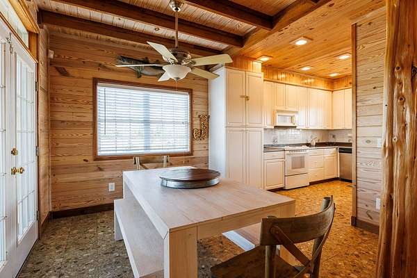 - Beamed Ceilings, Cathedral Ceiling(s), Recessed Lighting, Walk-In Closet(s), Washer/Dryer Hookup, Window Treatment Some, Woodwork Stained