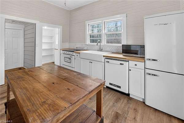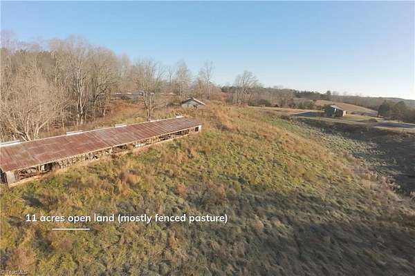 Seller is motivated and has set pricing to support a contract before year-end. 19 acres in Surry County, NC with renovated 3 bedroom, 2 bath 1915 home with multiple farm buildings. About 11+- acres are open field suitable for livestock, horses, or hay, and about 7+- acres are mostly mature hardwoods with a small pond and creek. The land has about 1,160+- feet of paved public road frontage, with power and fiber internet. There are no deed restrictions, offering potential to subdivide or build additional homes, and additional adjoining acreage is available. The property is located at end of dead-end country road, about 3.8 miles from Pilot Mountain State Park, 7.5 miles to downtown King, and roughly 26 minutes to downtown Winston-Salem. Annual taxes are approximately $628, supported by a low county tax rate and enrollment in the Present Use Value program transferable to new owner. Visit listing agent's website to access attachments, video tour and additional details.
