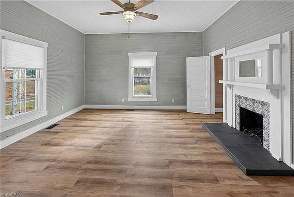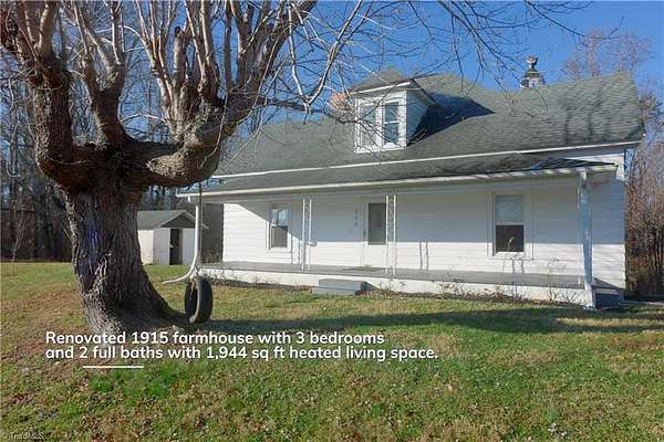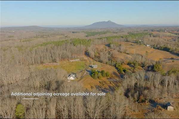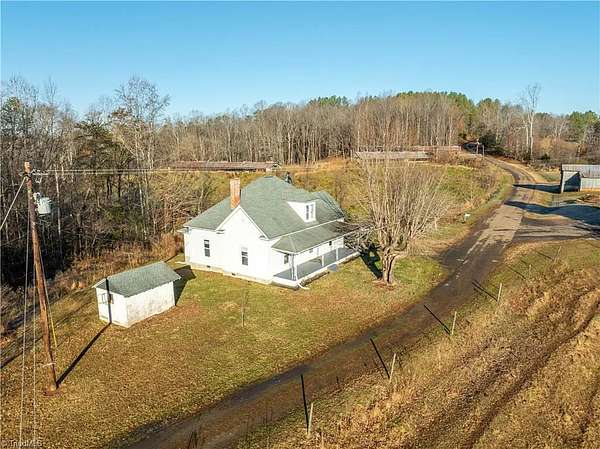A rare opportunity to own a versatile, private property with room to grow in beautiful Surry County! This 19 acre property features a renovated 1915 farmhouse with 3 bedrooms and 2 baths, along with multiple farm buildings. Approximately 11+- acres of open pasture are ideal for horses, livestock, or hay, while 7+- wooded acres of mature hardwoods include a small pond and creek, creating a beautiful natural backdrop. The property sits at the end of a dead-end county road, with 1,160+- feet of paved public road frontage and a road maintenance agreement in place. With additional adjoining acreage, power, and fiber internet, the property has great potential for building additional homes or subdividing. Conveniently located just 3.8 miles from Pilot Mountain State Park, 7.5 miles from downtown King, and 26 minutes from Winston-Salem. Electric: Power at property line Sewer: Private Sewer, Septic Tank Water: Private, Well Annual Tax Amount: $628 HOA: No Here is a helpful google pin to access the property: https://maps.app.goo.gl/igWae1oAJ4bSc8Wy8