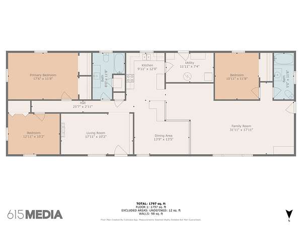 - Bedroom x 3, Den, Dining Room, Kitchen, Living Room