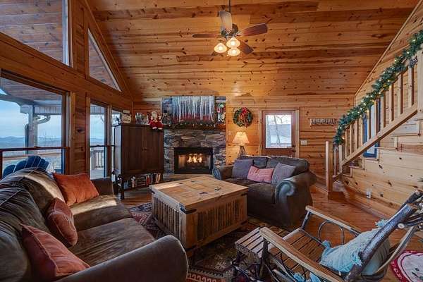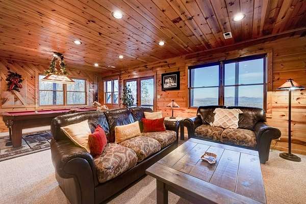 Est $4,469/moThis is a must see turn key property! Brasstown Bald can be seen on a clear day. Phenomenal long range mountain views. As a short term rental, there is a great rental history and is beautifully maintained. The home boasts multiple outdoor spaces including two covered porches, or a patio with a hot tub to watch the sunrise to a firepit to watch the sunset. There are 3 bedrooms, 3 bathrooms, great room (on the main), and bonus room for entertaining in the basement. The stainless steel appliances, warm wood interior and 2 stone fireplaces make this house a home. Most of the furniture and pool table is included on a separate bill of sale.