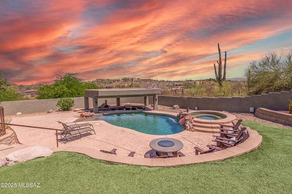 Welcome to this desert paradise in the desirable gated Tucson Mountain Reserve community at the base of Saguaro National Park West! Over 3.3 acres of desert sanctuary await in this immaculate home, featuring a split and open floor plan with towering ceilings. The long, private driveway brings you to your new inviting courtyard with locking gate in front of your single story, 4 bedroom, 4 bathroom, 3 car garage, 3411sqft home. Enter to find natural light and magnificent views from every window and exterior door, imported Italian tile throughout, (no carpet!), and a gourmet chef's kitchen providing dual side-by-side Jenn Air refrigerators and Thermador gas stove and dishwasher. Enjoy the outstanding site from your 10-foot windows while you relax in front of your stacked stone gas fireplace in the great room. Your primary suite features a spacious bedroom with stunning views of your backyard and mountains beyond, massive walk-in closet, and bathroom complete with walk-in shower, separate soaking tub, and dual vanities. The backyard retreat brings you a heated, beach-entrance pebble tec swimming pool with swim up bar and calming spa to enjoy at the end of the day. Your complete Jenn Air outdoor kitchen awaits under your luxurious covered ramada, surrounded by easy-care desert plantings with drip irrigation, lovely artificial turf, and city and mountain landscape. An oversized additional covered patio provides shade and the perfect place to absorb peace and serenity. Extra storage provided in your extended length 3-car garage with workshop area and epoxy coating. This luxury property was completely remodeled in 2017 with custom features throughout, including Ultracraft soft close maple cabinets and granite countertops, solid core interior doors, Kohler shower fixtures and sinks, upgraded lights and ceiling fans including recessed canned lighting, and Bali window coverings. The washer and dryer convey in the large laundry room with utility sink and cabinets for extra storage. Multiple upgrades include 2017 18-SEER air conditioning system, on-demand tankless hot water system, central sound system, and central vacuum. But don't forget about the area! This home is surrounded by endless hiking and mountain biking trails, with easy access to Interstate-10, Downtown Tucson, the Arizona-Sonora Desert Museum, Old Tucson, businesses, shopping, parks, restaurants, schools and much more! Be the proud owner of this magnificent home...today!