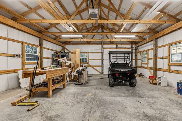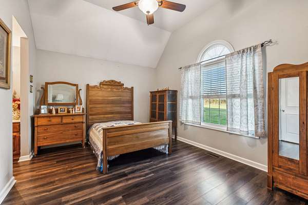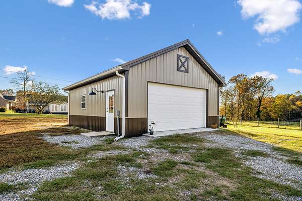 Hobby farm only 30 miles north of Nashville perfect for small homestead! Conveniently located one mile from I-65 for easy commute to Nashville or Bowling Green. Modern farmhouse with open concept, light-filled living space, cherry hardwood floors, vaulted ceiling, custom built-in cabinets, gas fireplace and windows overlooking the back yard, pool, and barns. Kitchen features granite countertops and stainless-steel appliances. Large primary suite on main level with gas fireplace and ensuite bath with custom tiled shower, jetted tub and large walk-in closet. Two large secondary bedrooms with new LVP flooring, walk-in closets and jack-n-jill bath also on main level. Upstairs, two spacious bonus rooms with a full bath add versatility ideal for a home office, teen/in-law suite, media room or playroom. Attached 2-car garage offers built-in shelves, potting bench and space for a work bench. Multi-level back deck overlooking two Dutch-style barns with a chicken coop, pool and 2 acres of fenced property provides the perfect space to entertain or just relax and enjoy the magnificent Tennessee sunsets! Detached 24'x30' garage with 110/220 electric and water hookups provide additional space for parking, workshop, or lawn equipment with a double garage door and small utility door allowing straight drive through. Pasture is fenced with hotwire and waiting for your livestock! With its blend of natural beauty and proximity to the city, this property is a rare find offering the best of both worlds, peaceful country living and easy access to shopping and local entertainment like Sumner Crest Winery, The Mint at Kentucky Downs and the annual Strawberry Festival!